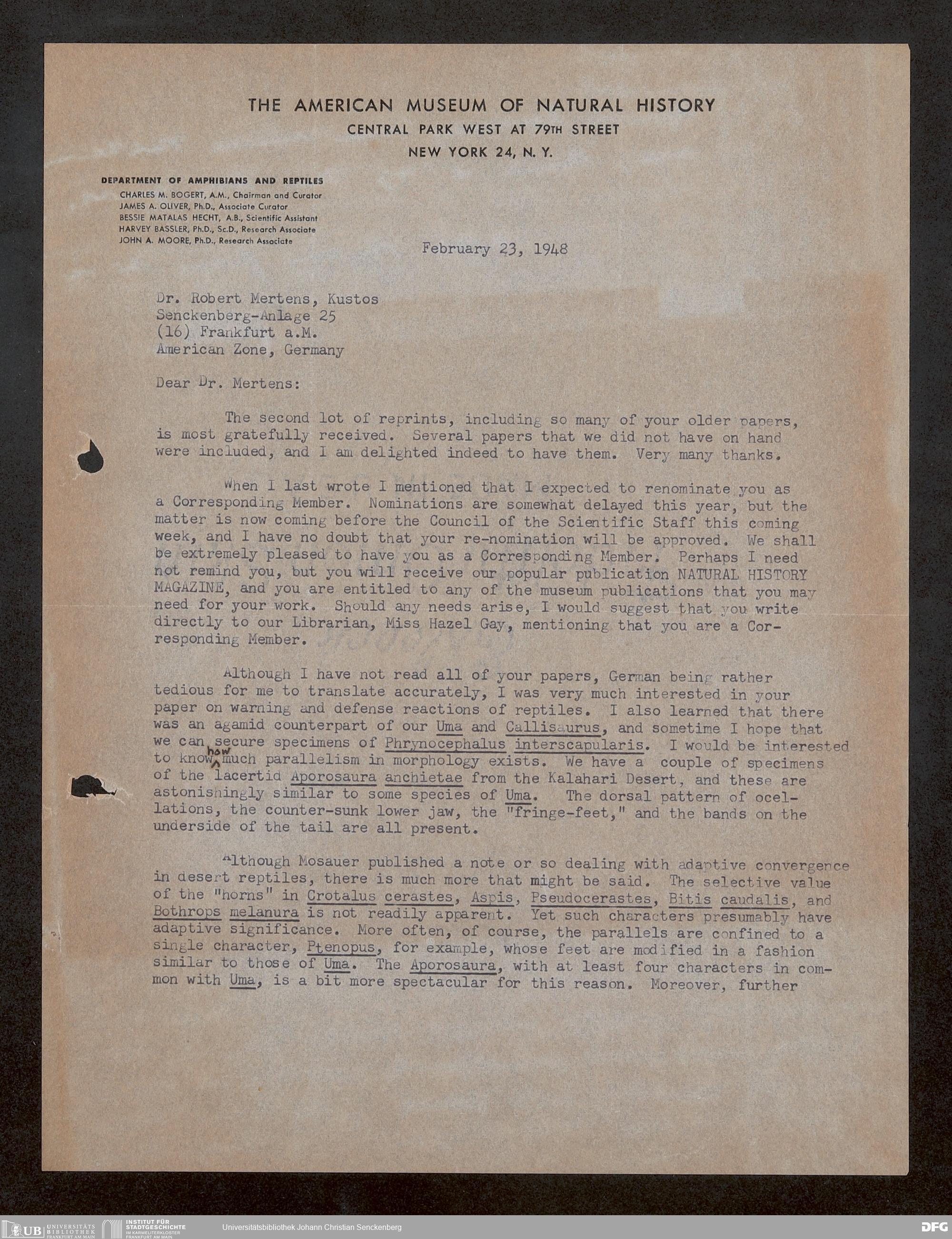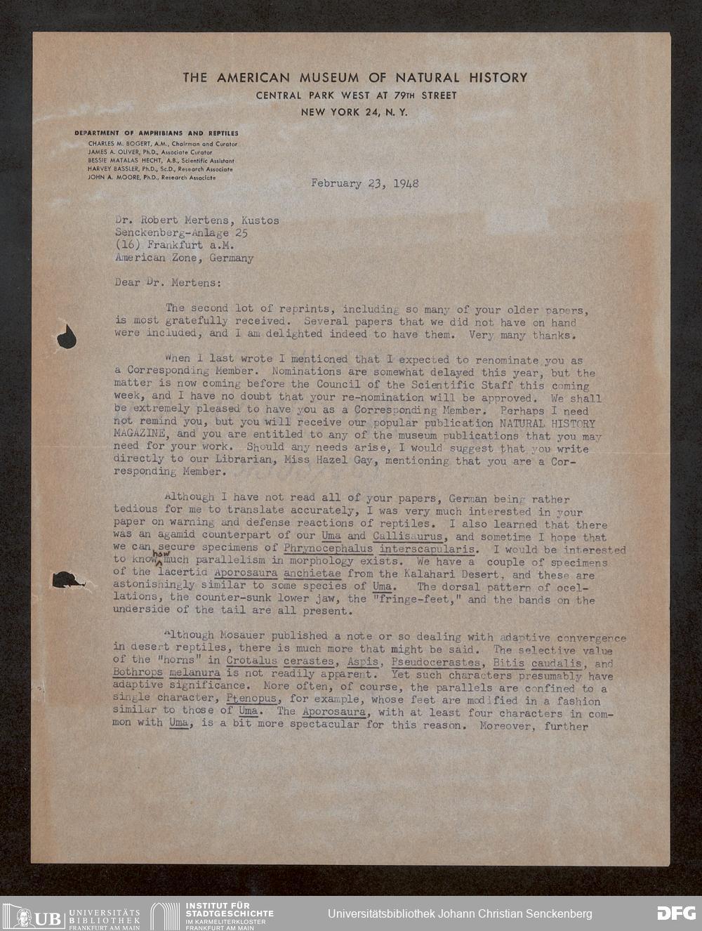 V176 Senckenberg Gesellschaft für Naturforschung, 1759-1 - Korrespondenz von Robert Mertens