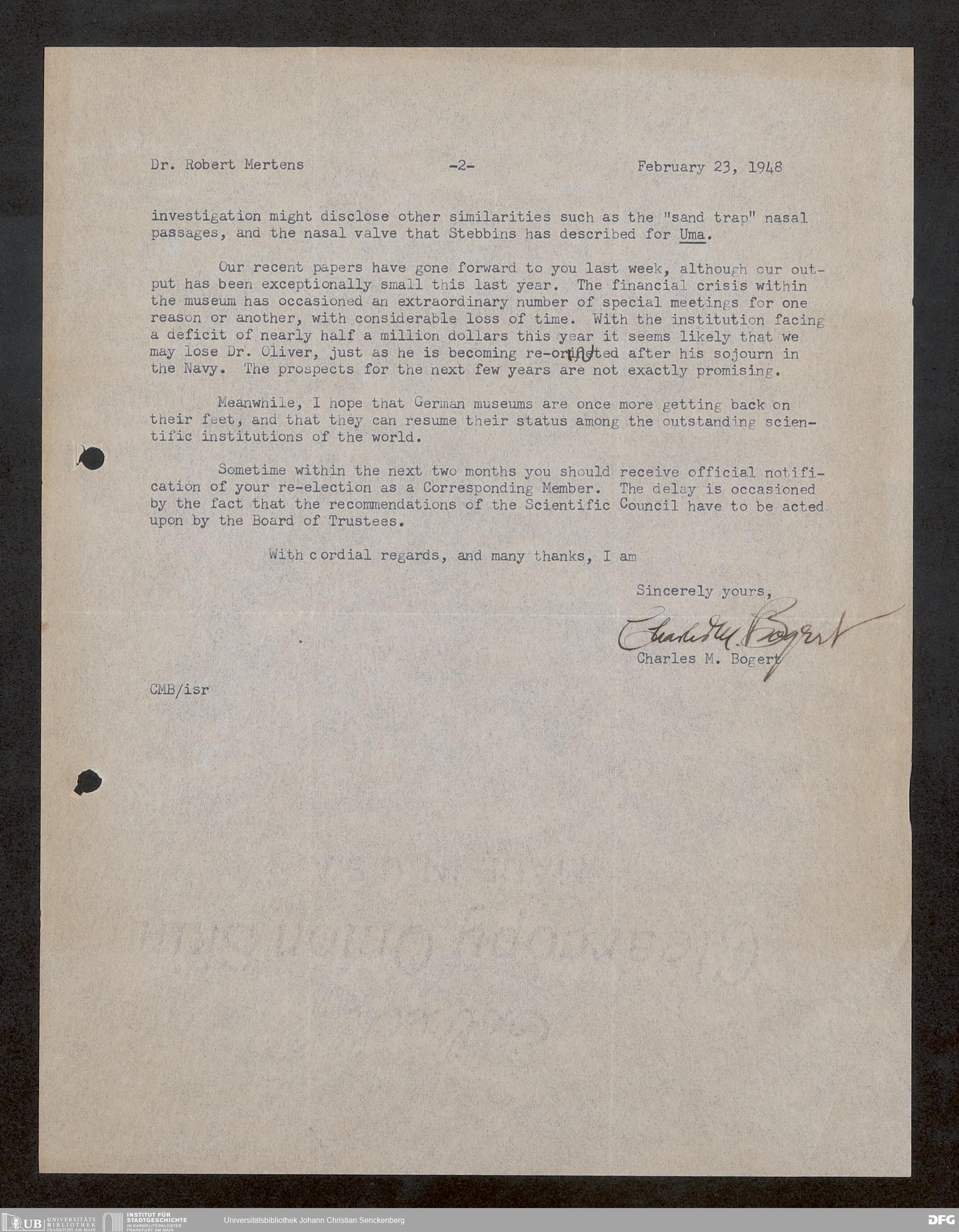 V176 Senckenberg Gesellschaft für Naturforschung, 1759-1 - Korrespondenz von Robert Mertens