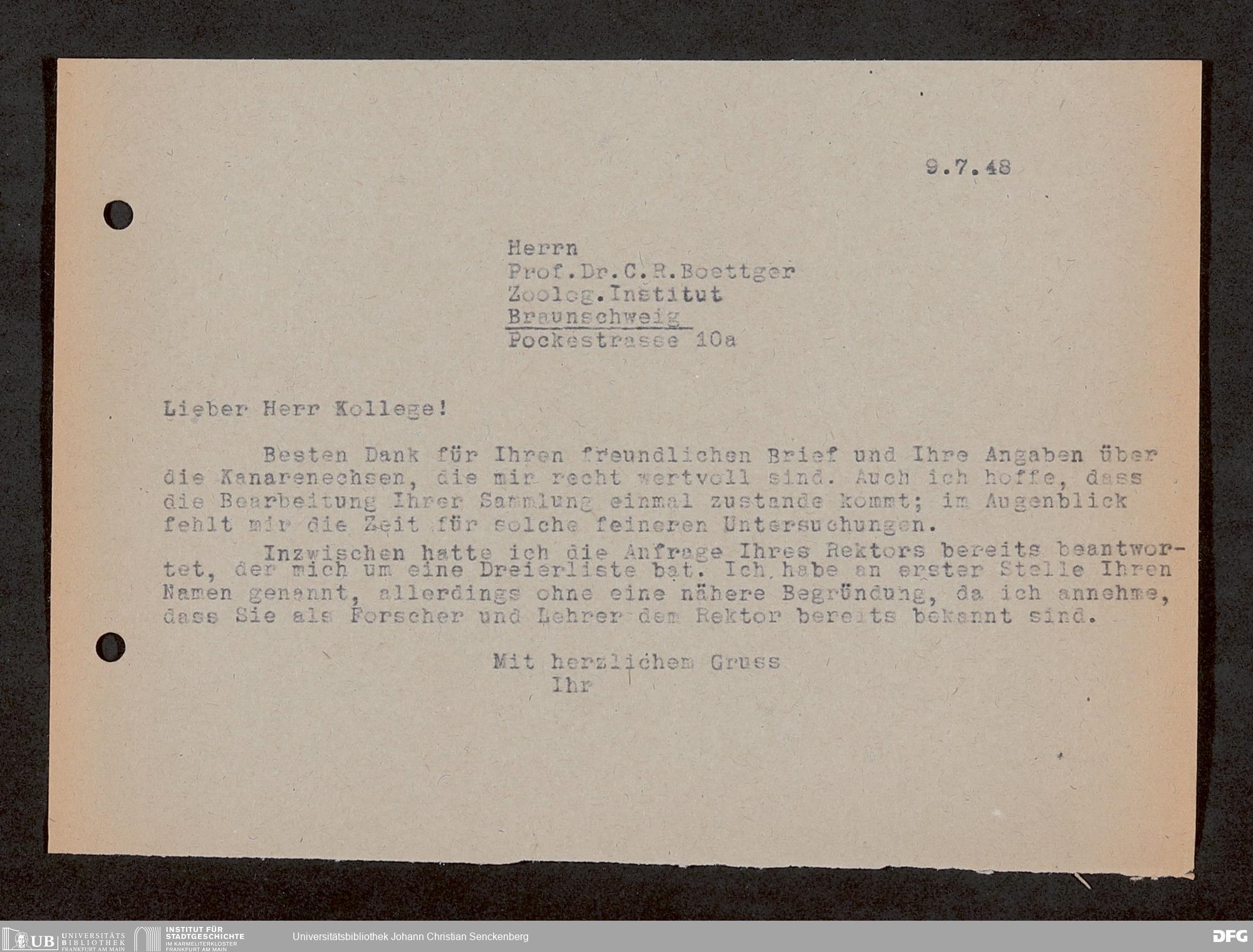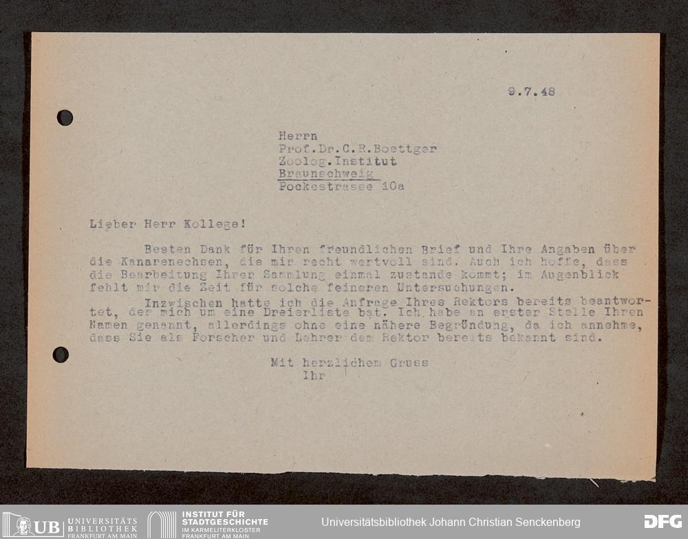 V176 Senckenberg Gesellschaft für Naturforschung, 1759-1 - Korrespondenz von Robert Mertens