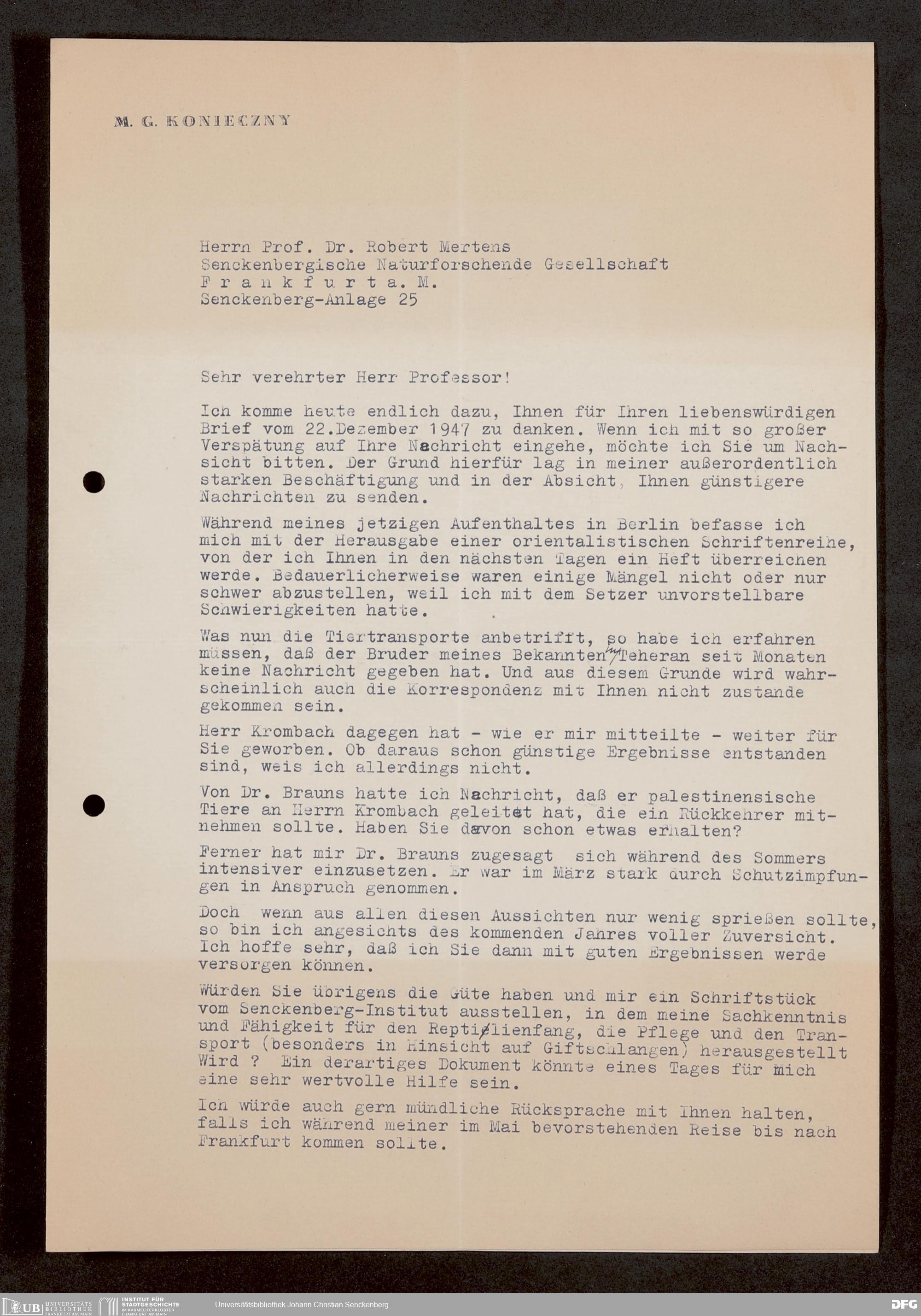V176 Senckenberg Gesellschaft für Naturforschung, 1759-1 - Korrespondenz von Robert Mertens