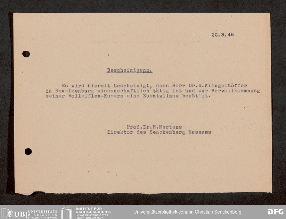 V176 Senckenberg Gesellschaft für Naturforschung, 1759-1 - Korrespondenz von Robert Mertens