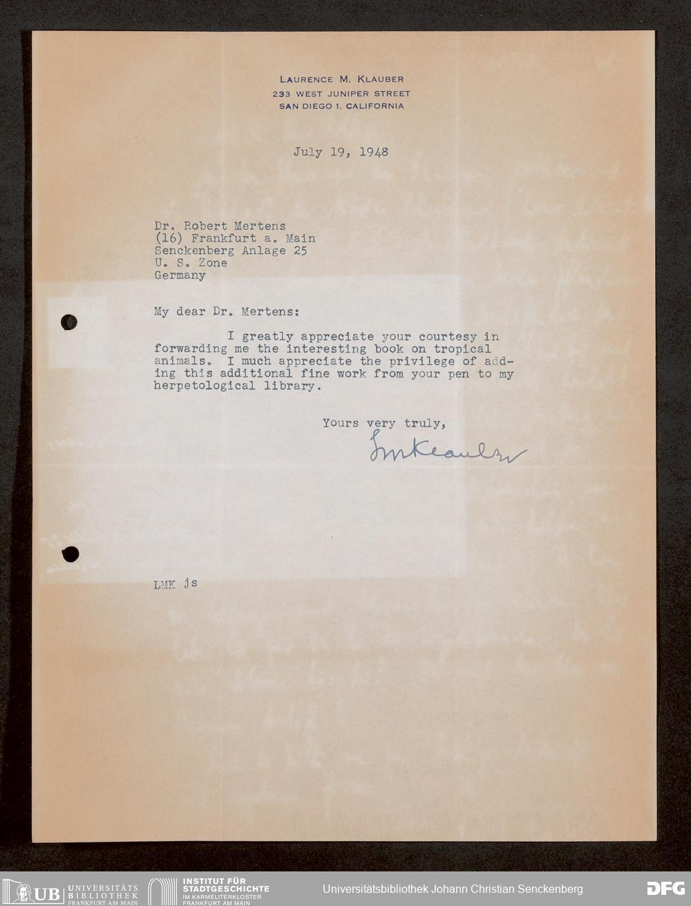 V176 Senckenberg Gesellschaft für Naturforschung, 1759-1 - Korrespondenz von Robert Mertens