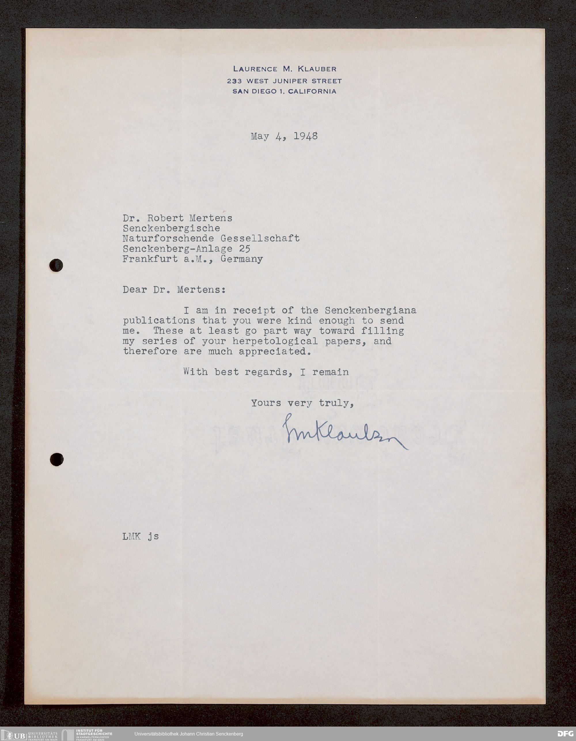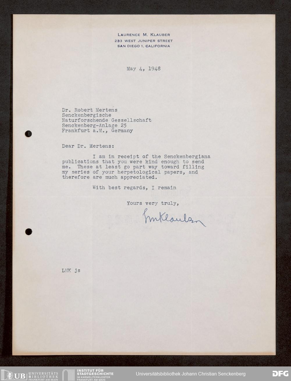 V176 Senckenberg Gesellschaft für Naturforschung, 1759-1 - Korrespondenz von Robert Mertens