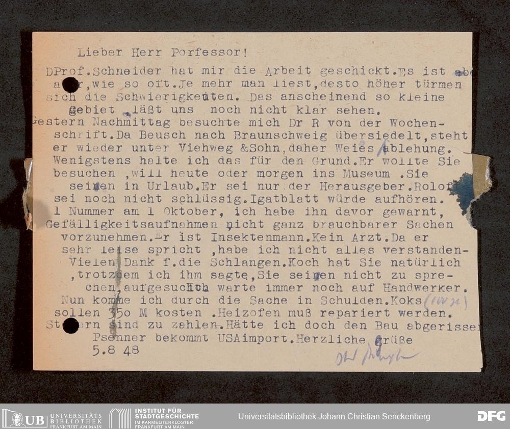 V176 Senckenberg Gesellschaft für Naturforschung, 1759-1 - Korrespondenz von Robert Mertens