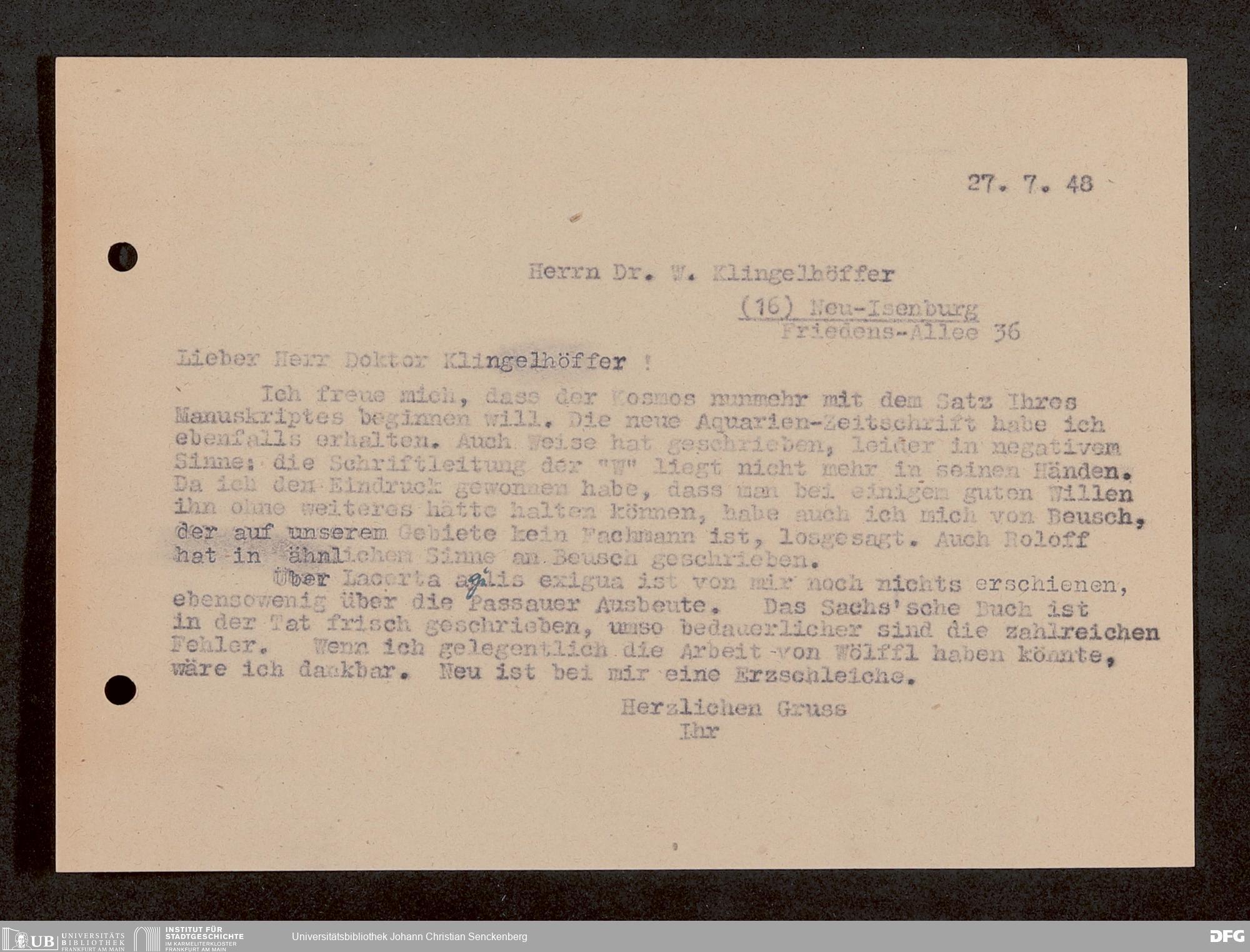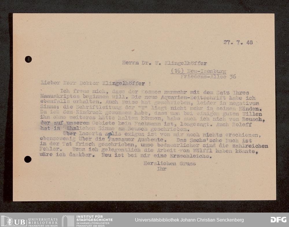 V176 Senckenberg Gesellschaft für Naturforschung, 1759-1 - Korrespondenz von Robert Mertens