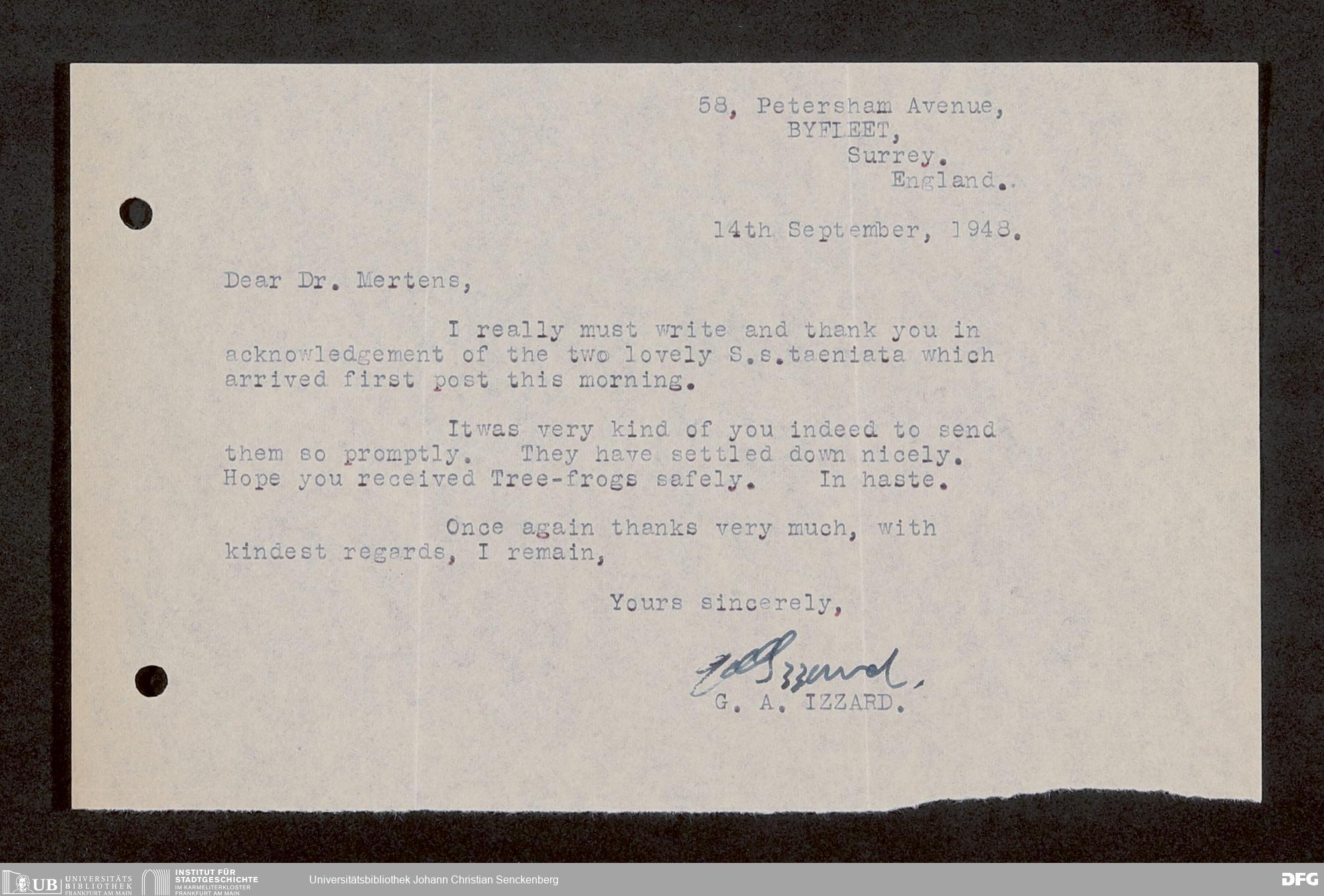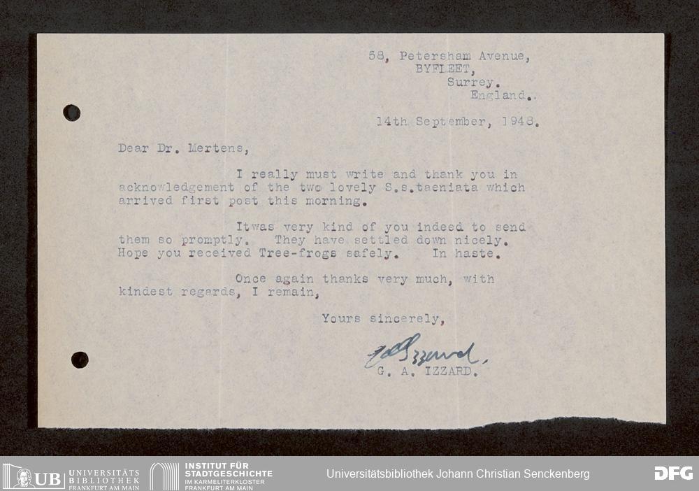V176 Senckenberg Gesellschaft für Naturforschung, 1759-1 - Korrespondenz von Robert Mertens