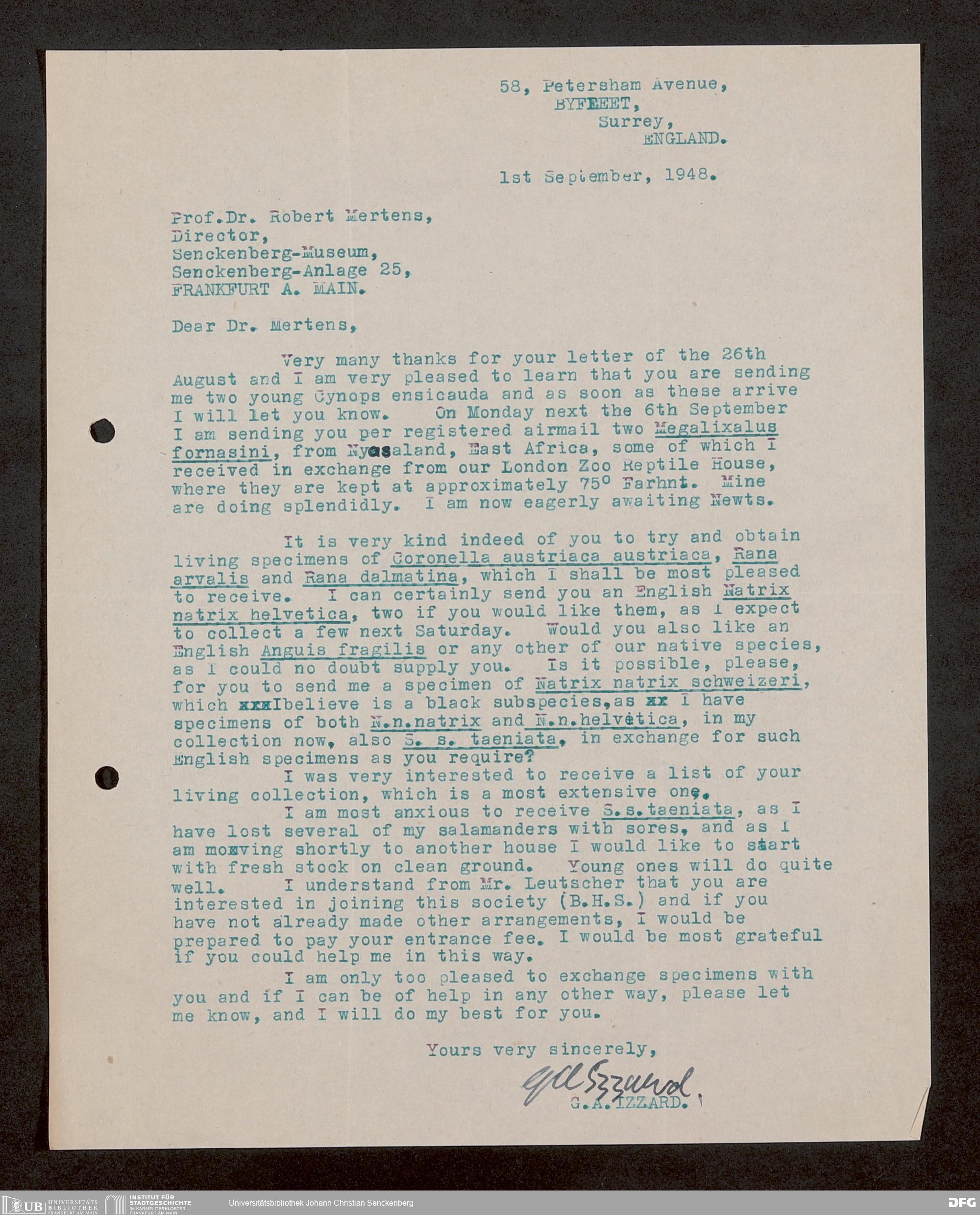 V176 Senckenberg Gesellschaft für Naturforschung, 1759-1 - Korrespondenz von Robert Mertens