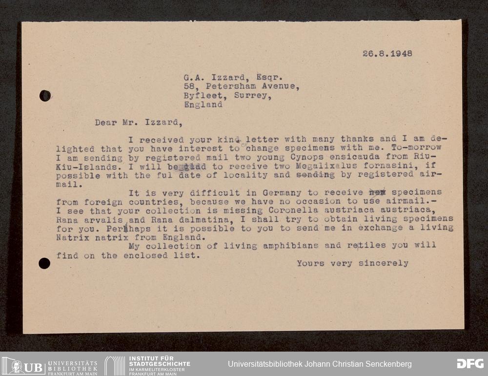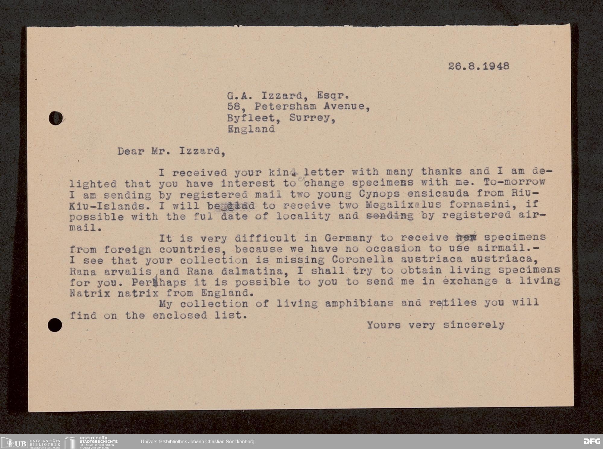 V176 Senckenberg Gesellschaft für Naturforschung, 1759-1 - Korrespondenz von Robert Mertens