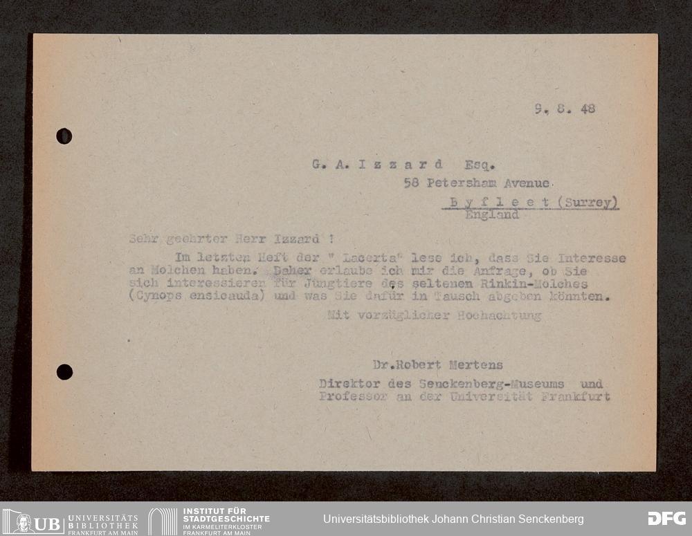 V176 Senckenberg Gesellschaft für Naturforschung, 1759-1 - Korrespondenz von Robert Mertens