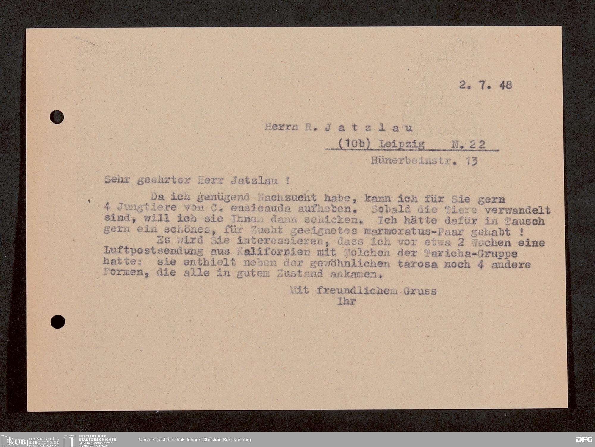 V176 Senckenberg Gesellschaft für Naturforschung, 1759-1 - Korrespondenz von Robert Mertens