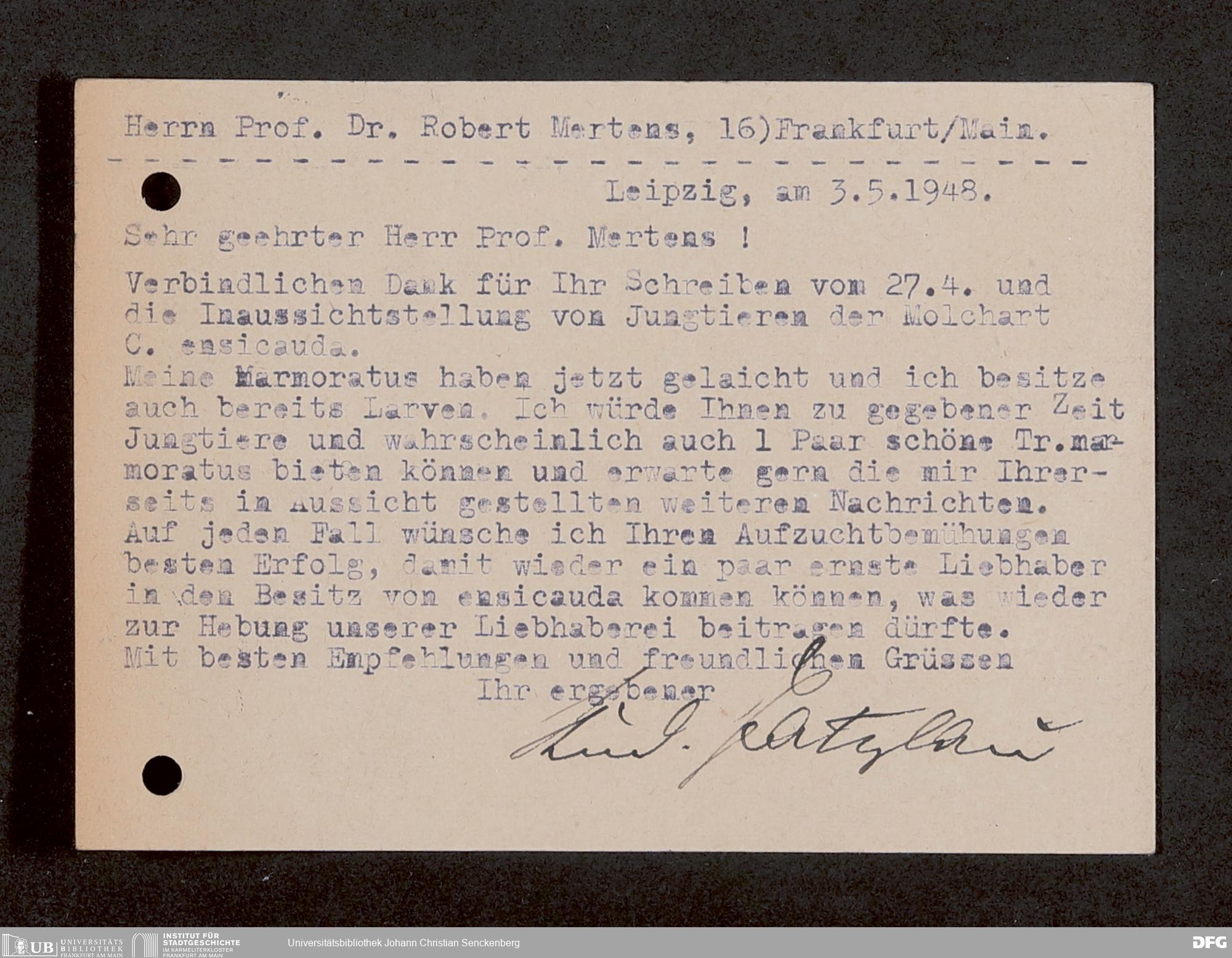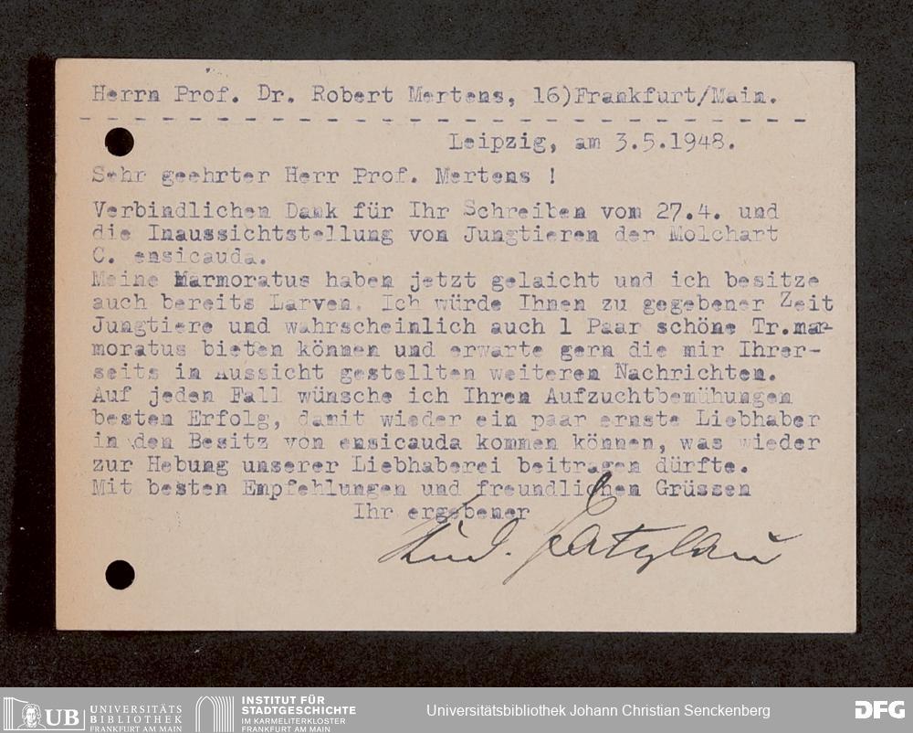 V176 Senckenberg Gesellschaft für Naturforschung, 1759-1 - Korrespondenz von Robert Mertens