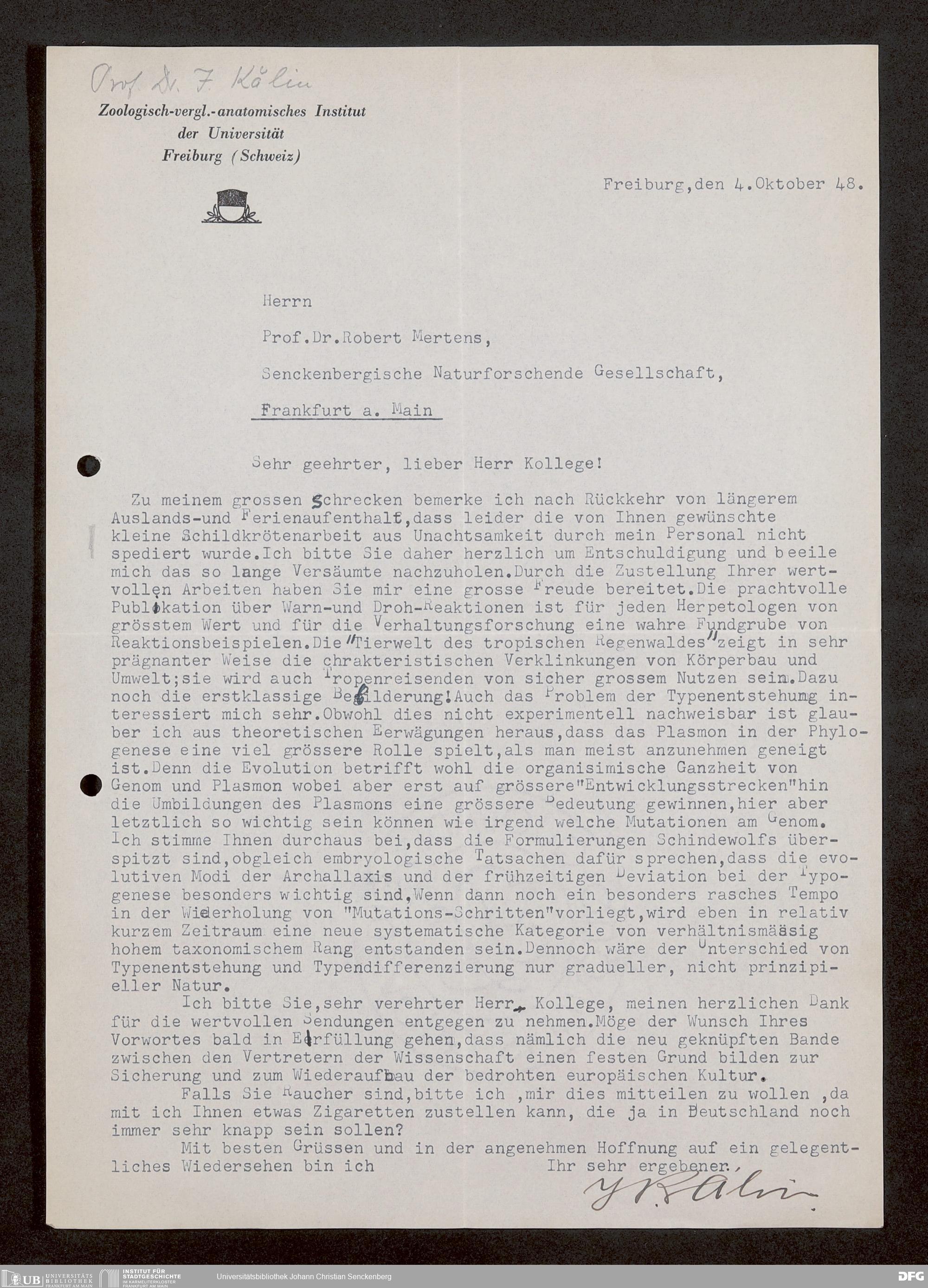 V176 Senckenberg Gesellschaft für Naturforschung, 1759-1 - Korrespondenz von Robert Mertens