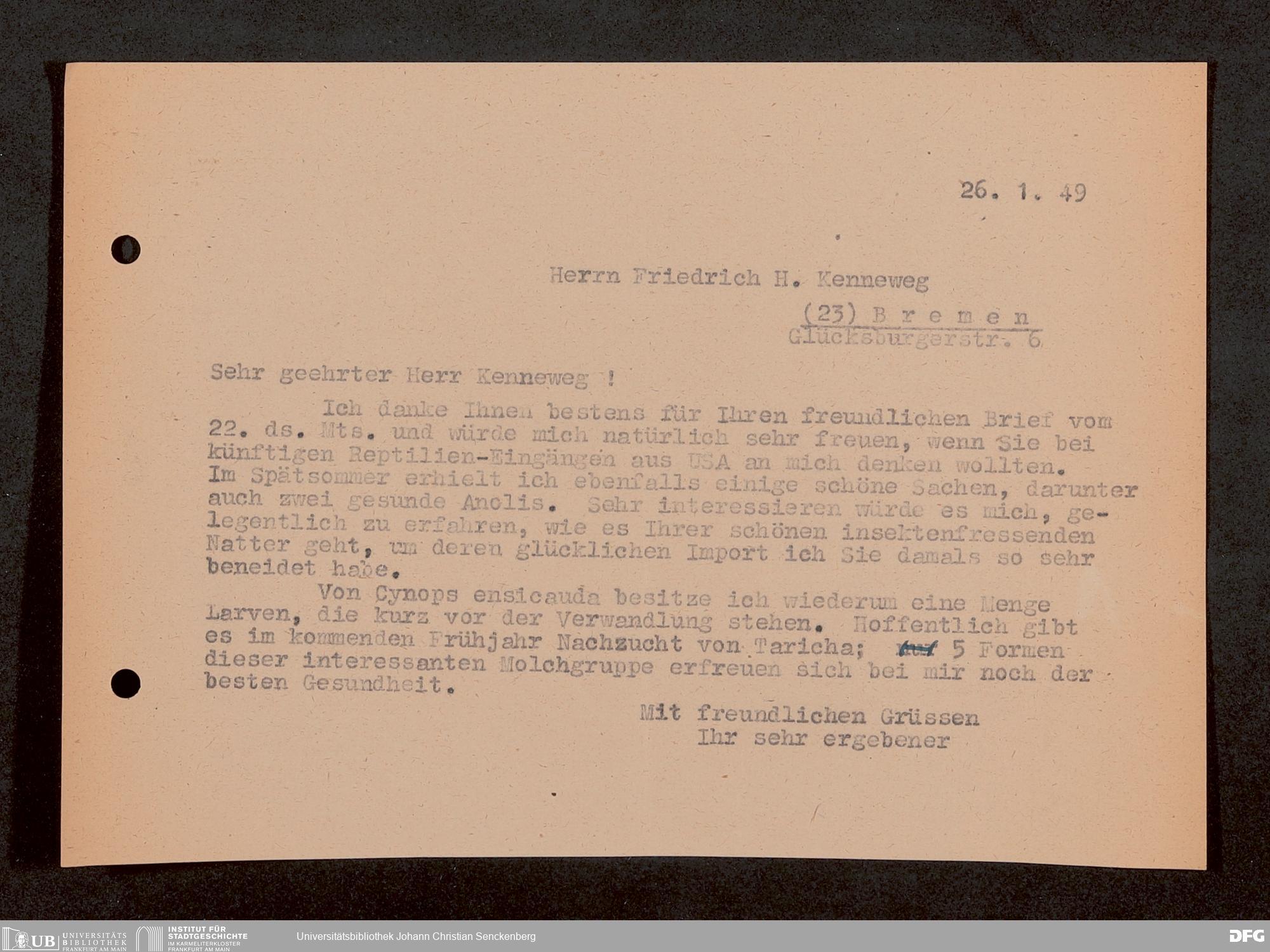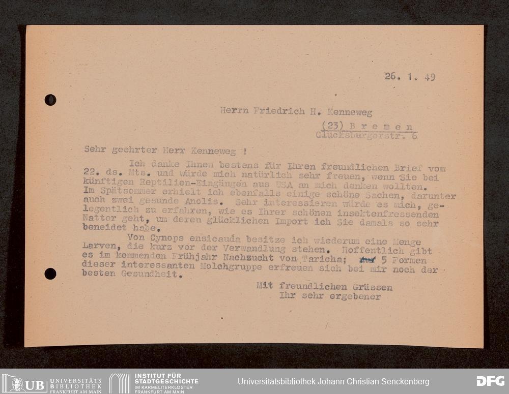 V176 Senckenberg Gesellschaft für Naturforschung, 1759-1 - Korrespondenz von Robert Mertens