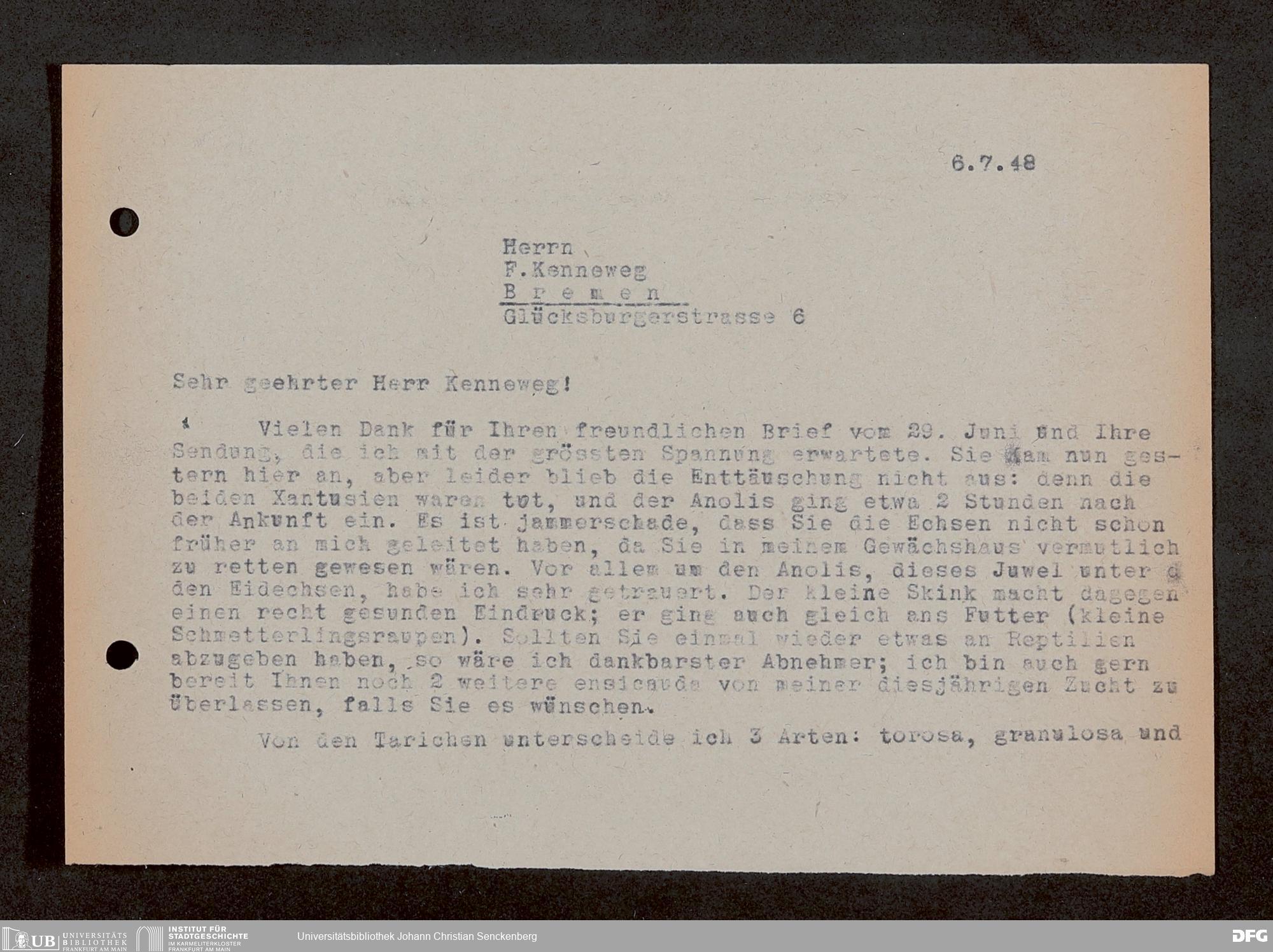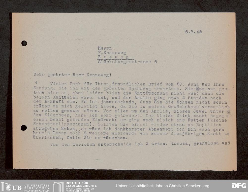 V176 Senckenberg Gesellschaft für Naturforschung, 1759-1 - Korrespondenz von Robert Mertens