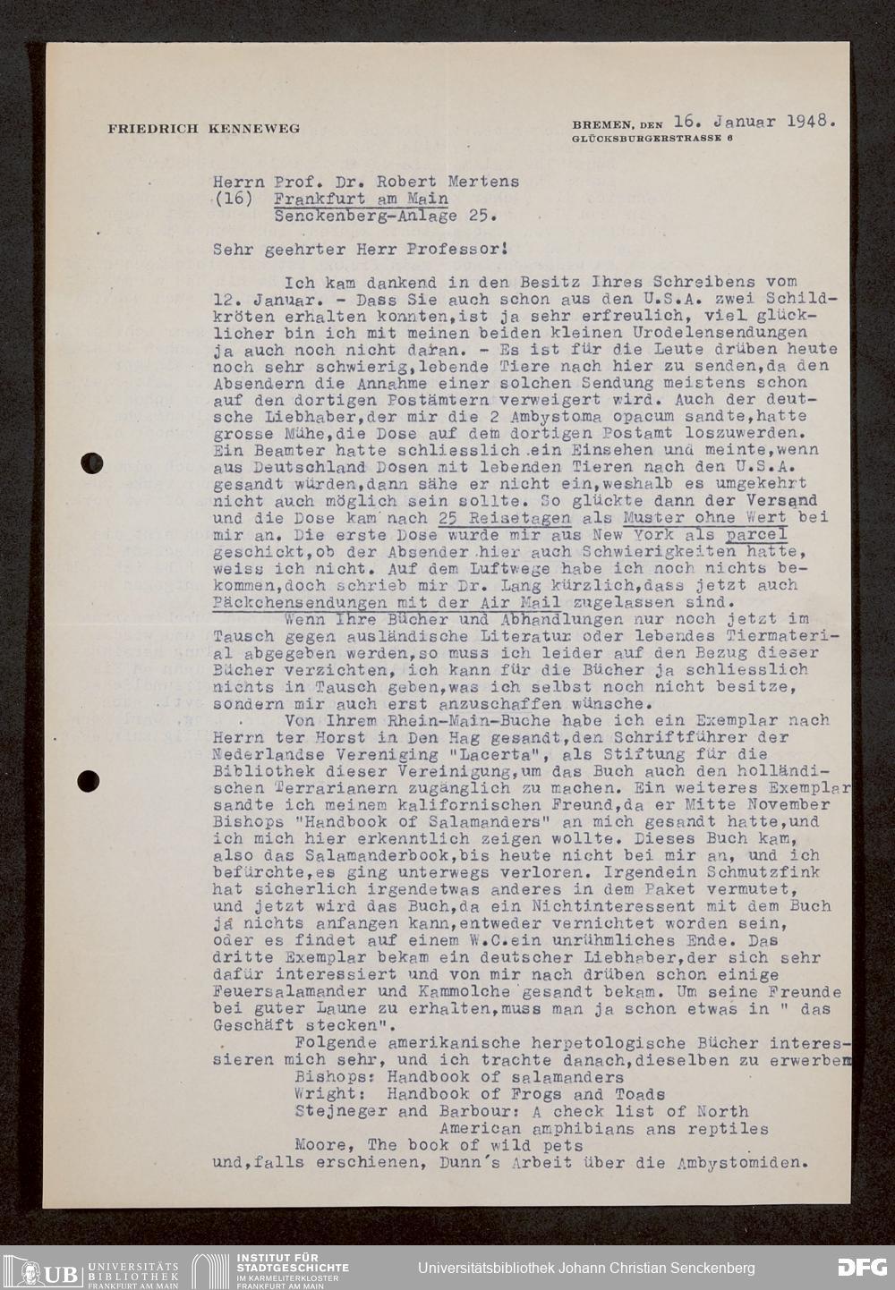 V176 Senckenberg Gesellschaft für Naturforschung, 1759-1 - Korrespondenz von Robert Mertens