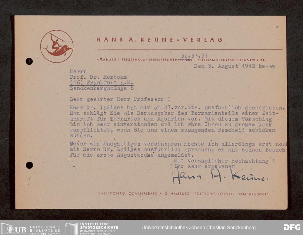 V176 Senckenberg Gesellschaft für Naturforschung, 1759-1 - Korrespondenz von Robert Mertens
