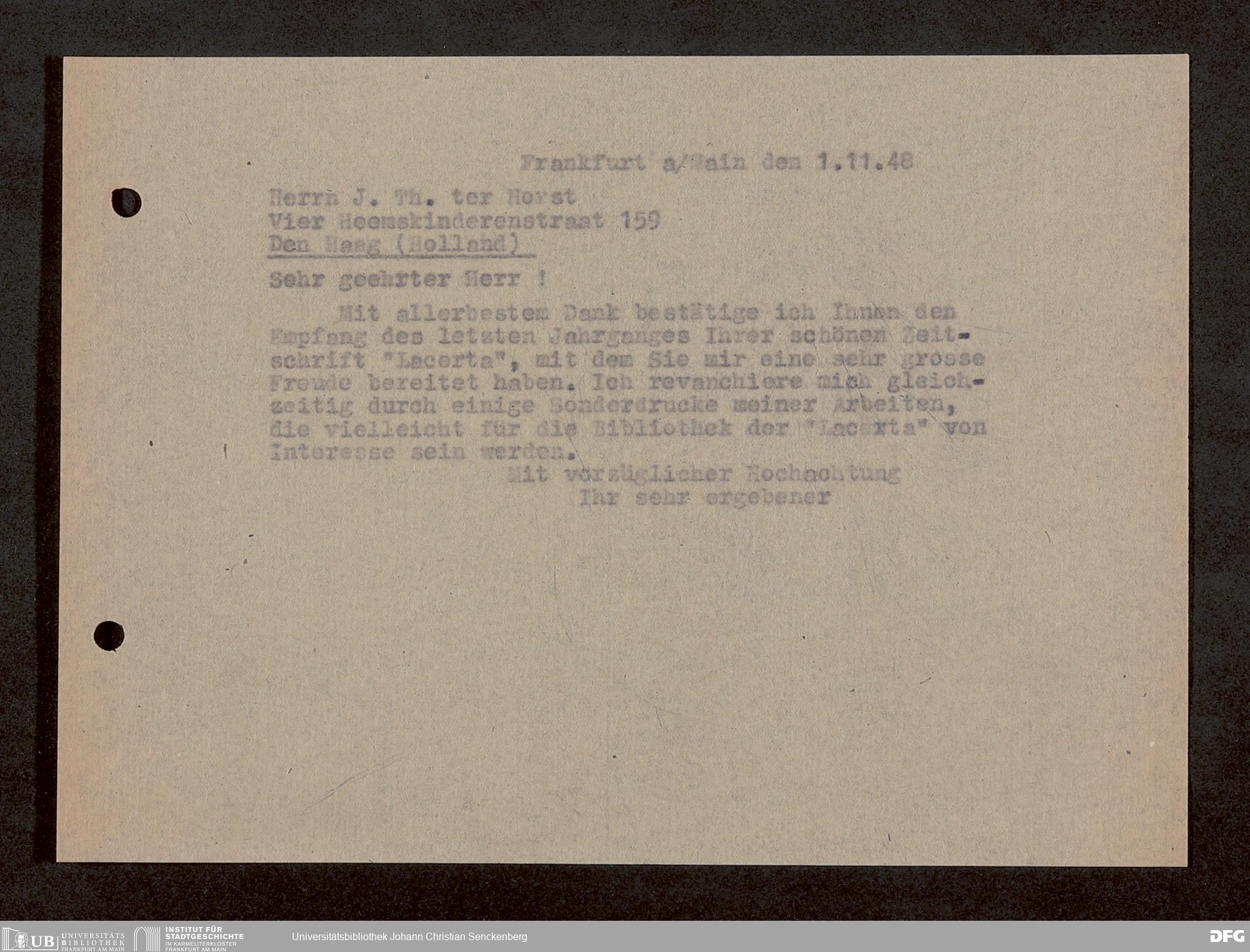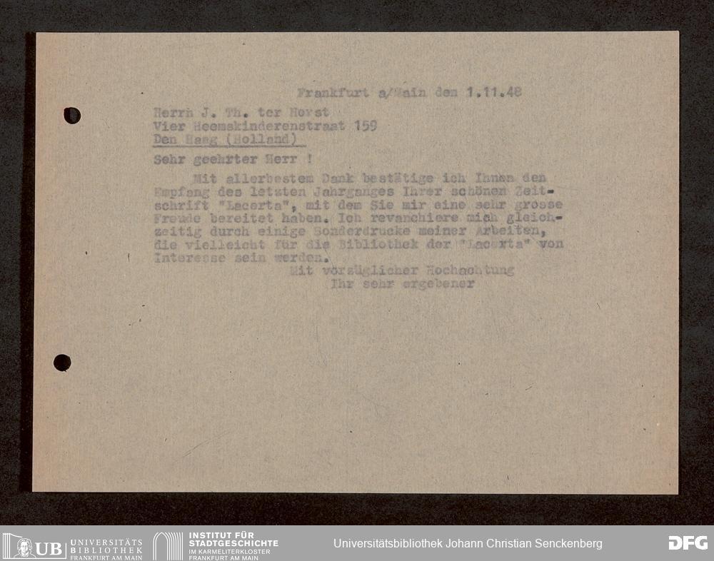 V176 Senckenberg Gesellschaft für Naturforschung, 1759-1 - Korrespondenz von Robert Mertens