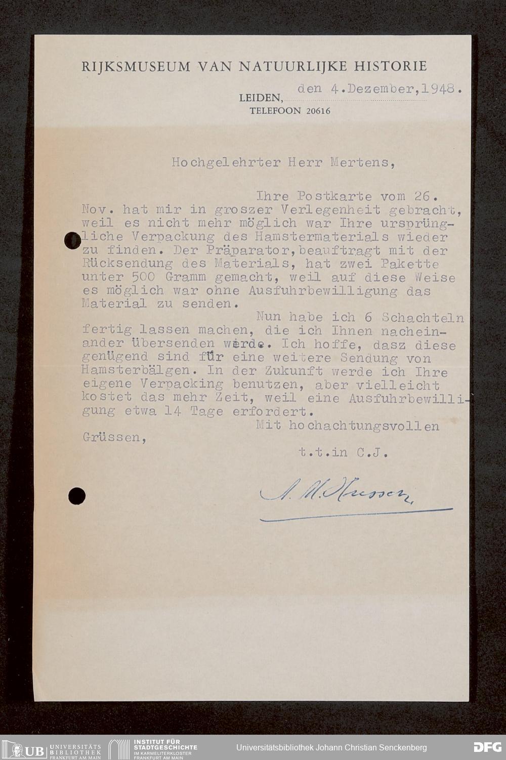 V176 Senckenberg Gesellschaft für Naturforschung, 1759-1 - Korrespondenz von Robert Mertens