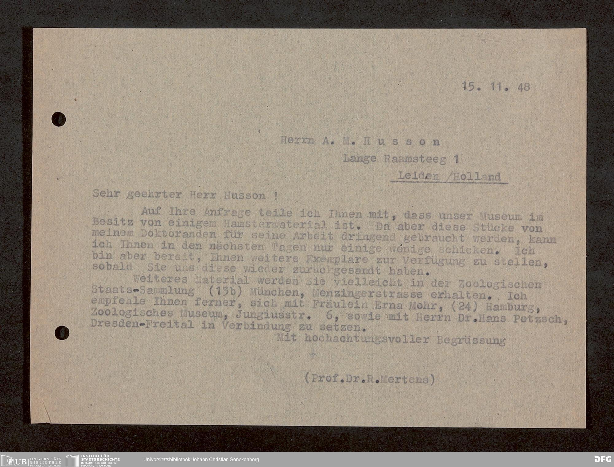 V176 Senckenberg Gesellschaft für Naturforschung, 1759-1 - Korrespondenz von Robert Mertens