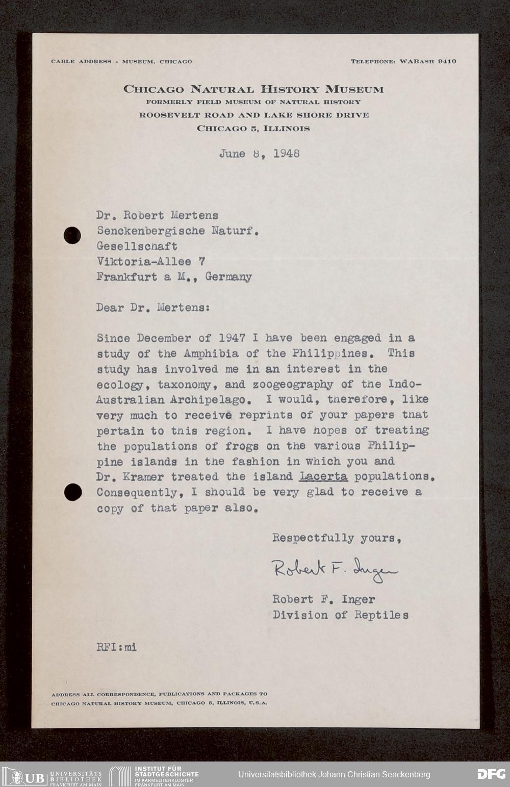 V176 Senckenberg Gesellschaft für Naturforschung, 1759-1 - Korrespondenz von Robert Mertens