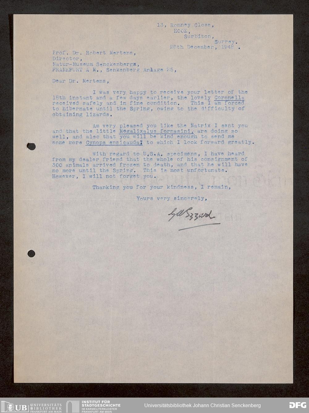 V176 Senckenberg Gesellschaft für Naturforschung, 1759-1 - Korrespondenz von Robert Mertens