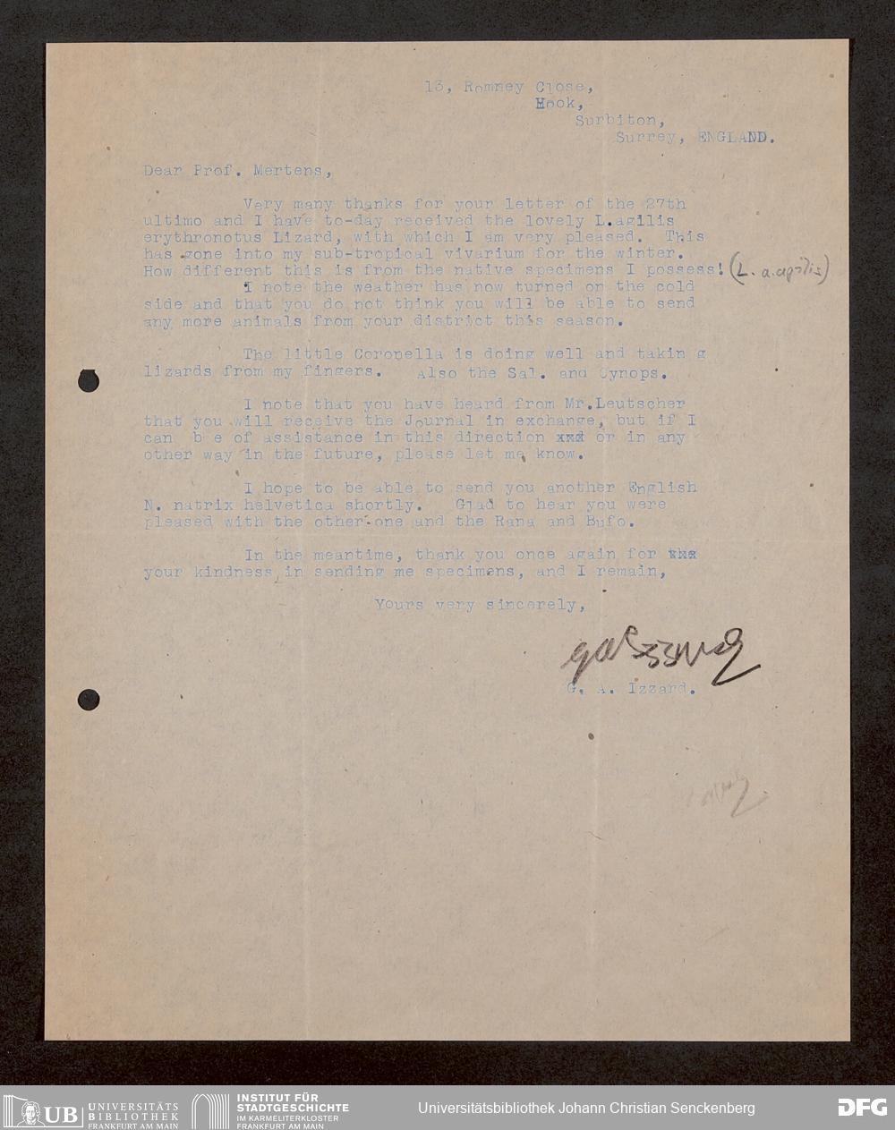 V176 Senckenberg Gesellschaft für Naturforschung, 1759-1 - Korrespondenz von Robert Mertens