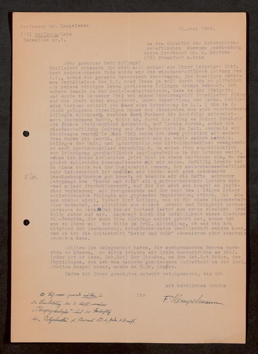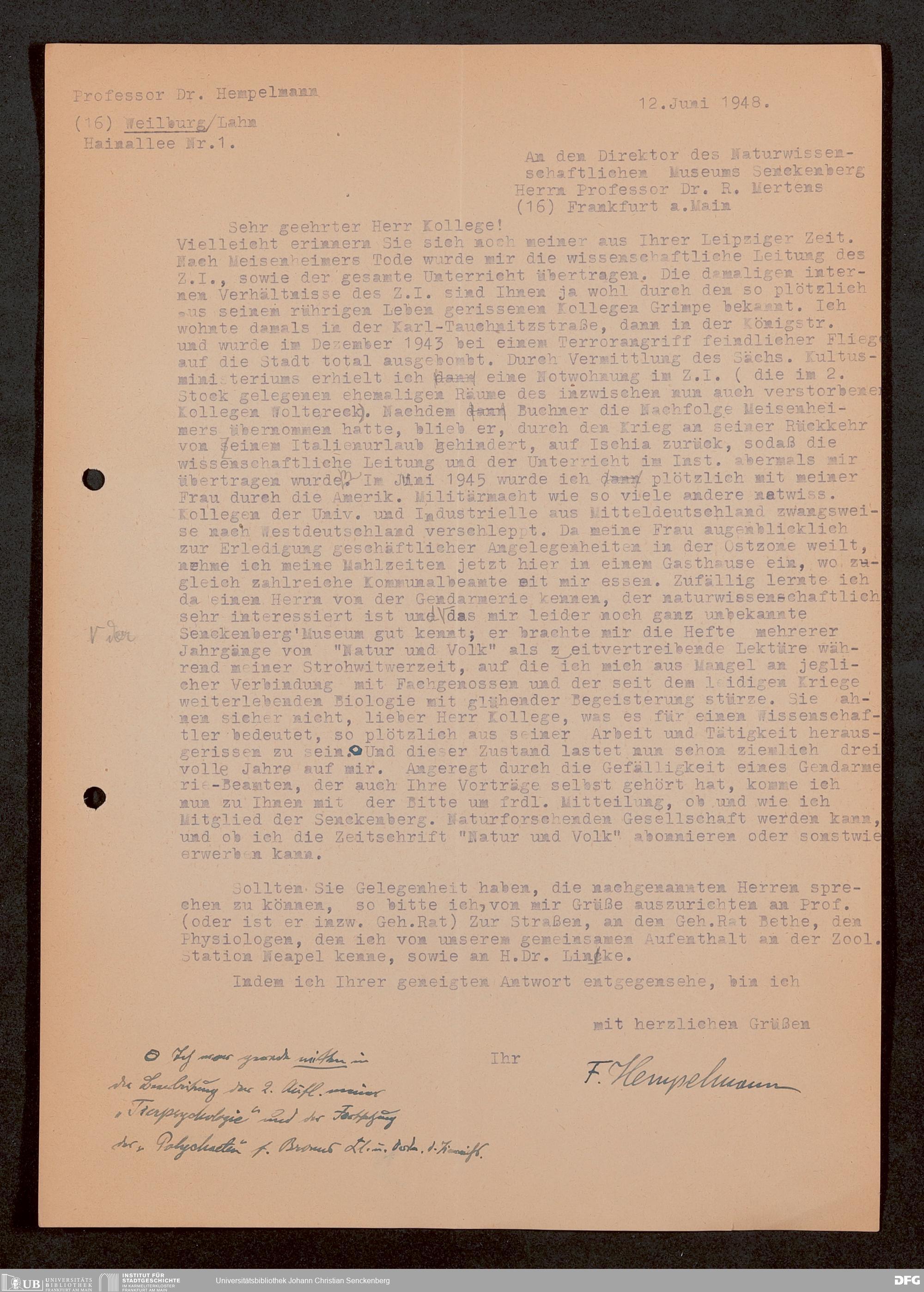 V176 Senckenberg Gesellschaft für Naturforschung, 1759-1 - Korrespondenz von Robert Mertens