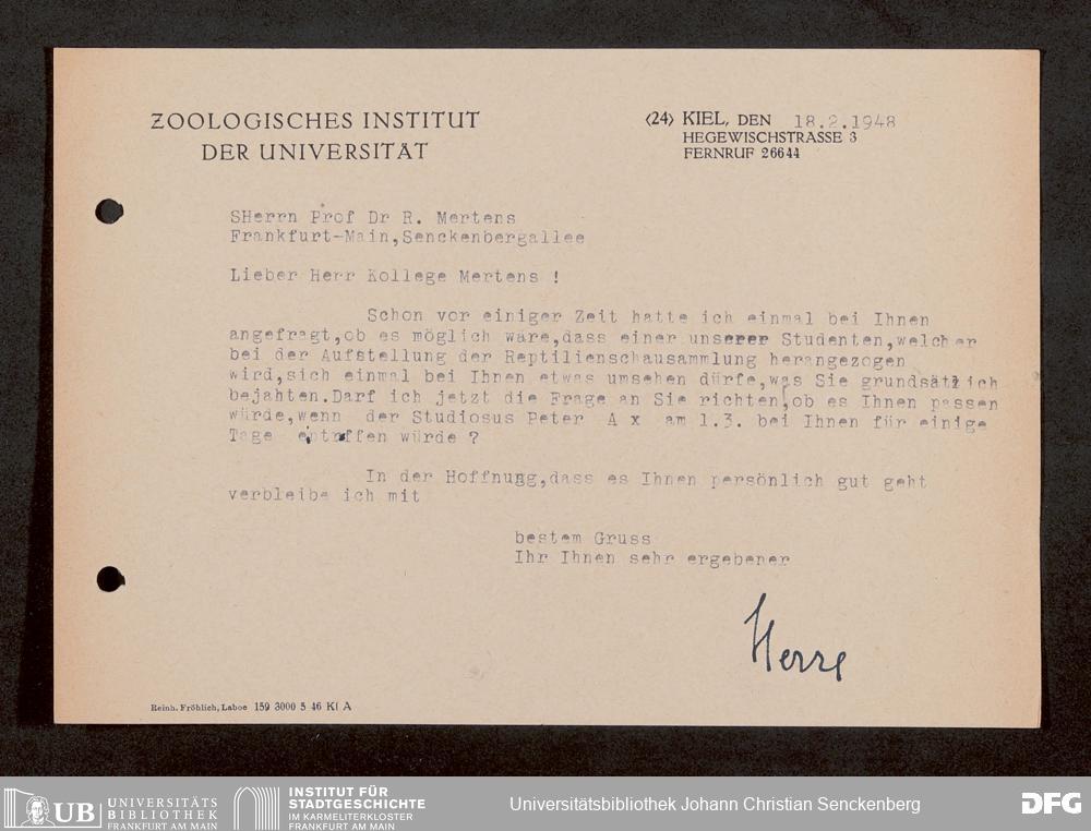 V176 Senckenberg Gesellschaft für Naturforschung, 1759-1 - Korrespondenz von Robert Mertens