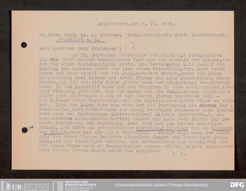 V176 Senckenberg Gesellschaft für Naturforschung, 1759-1 - Korrespondenz von Robert Mertens