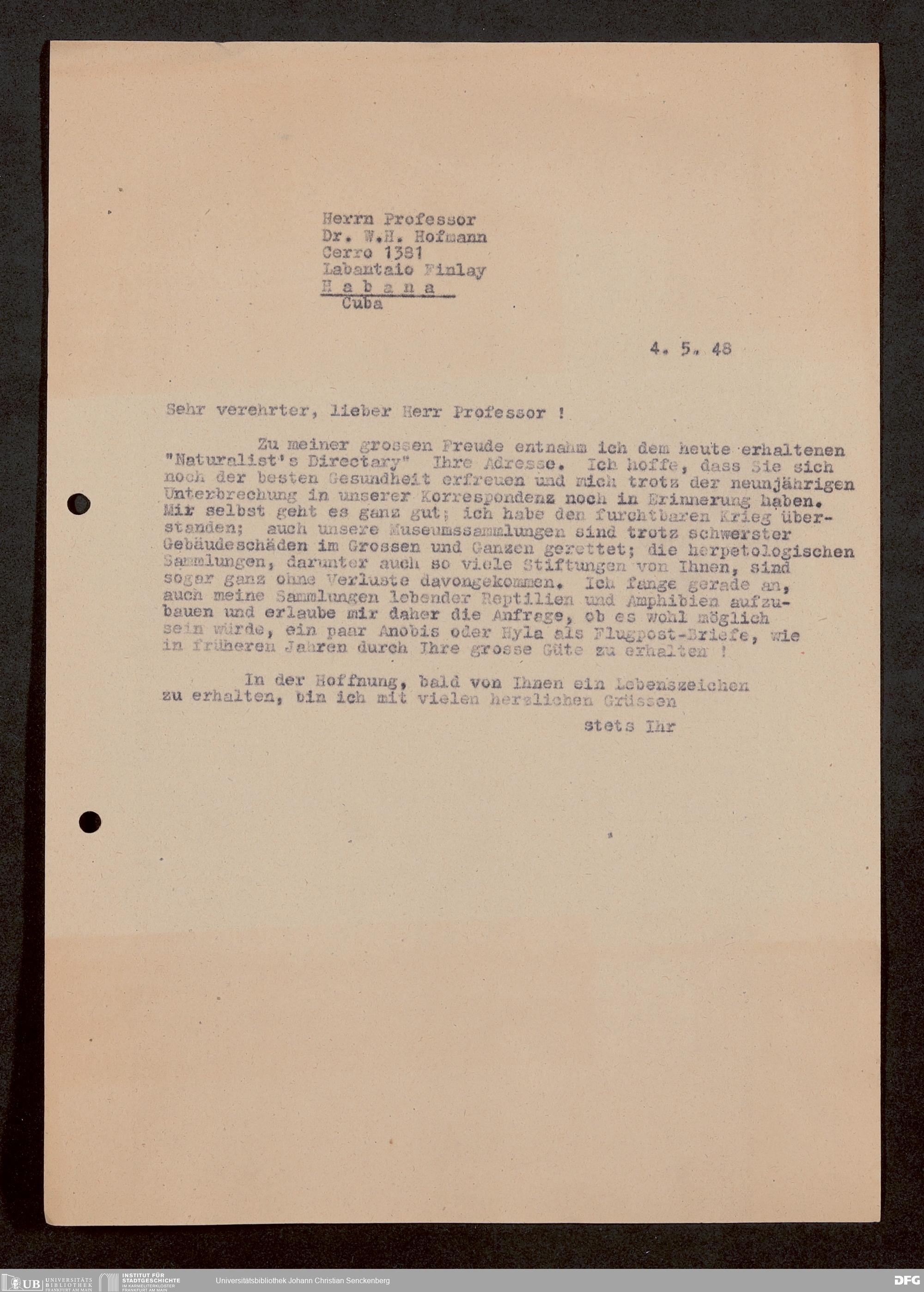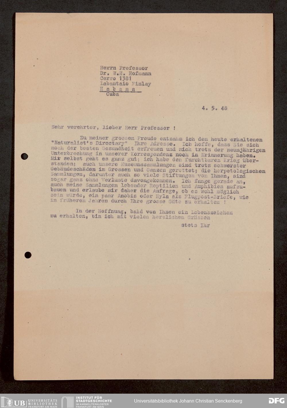 V176 Senckenberg Gesellschaft für Naturforschung, 1759-1 - Korrespondenz von Robert Mertens