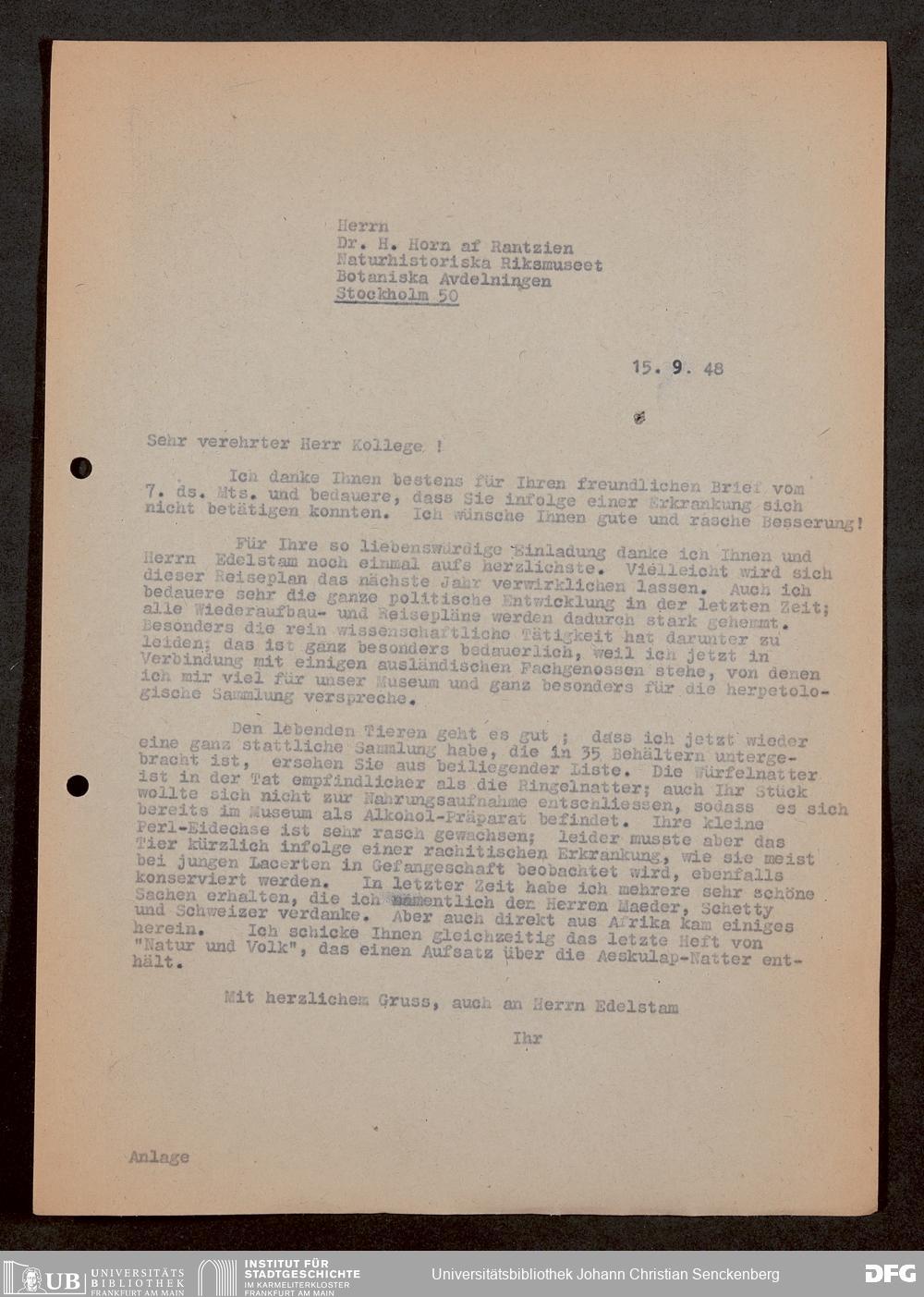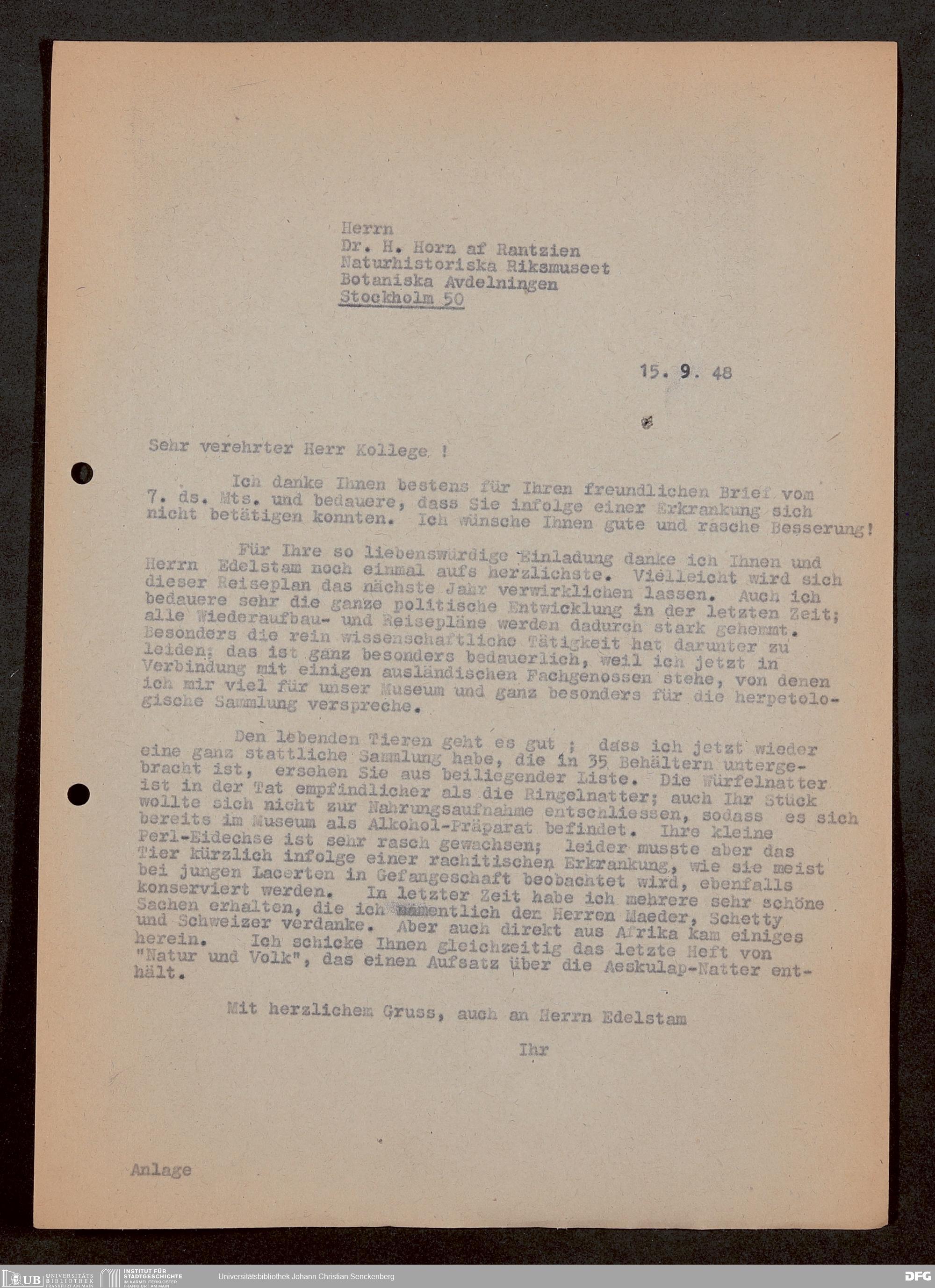 V176 Senckenberg Gesellschaft für Naturforschung, 1759-1 - Korrespondenz von Robert Mertens