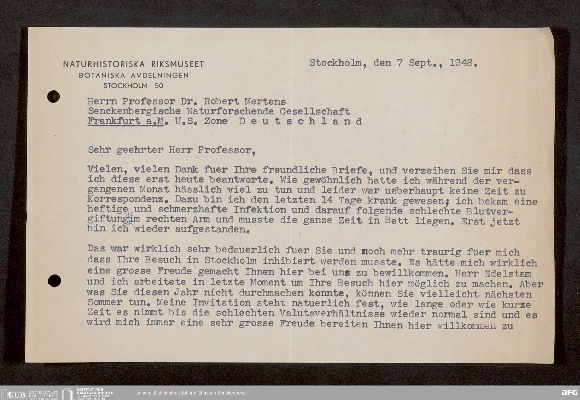 V176 Senckenberg Gesellschaft für Naturforschung, 1759-1 - Korrespondenz von Robert Mertens
