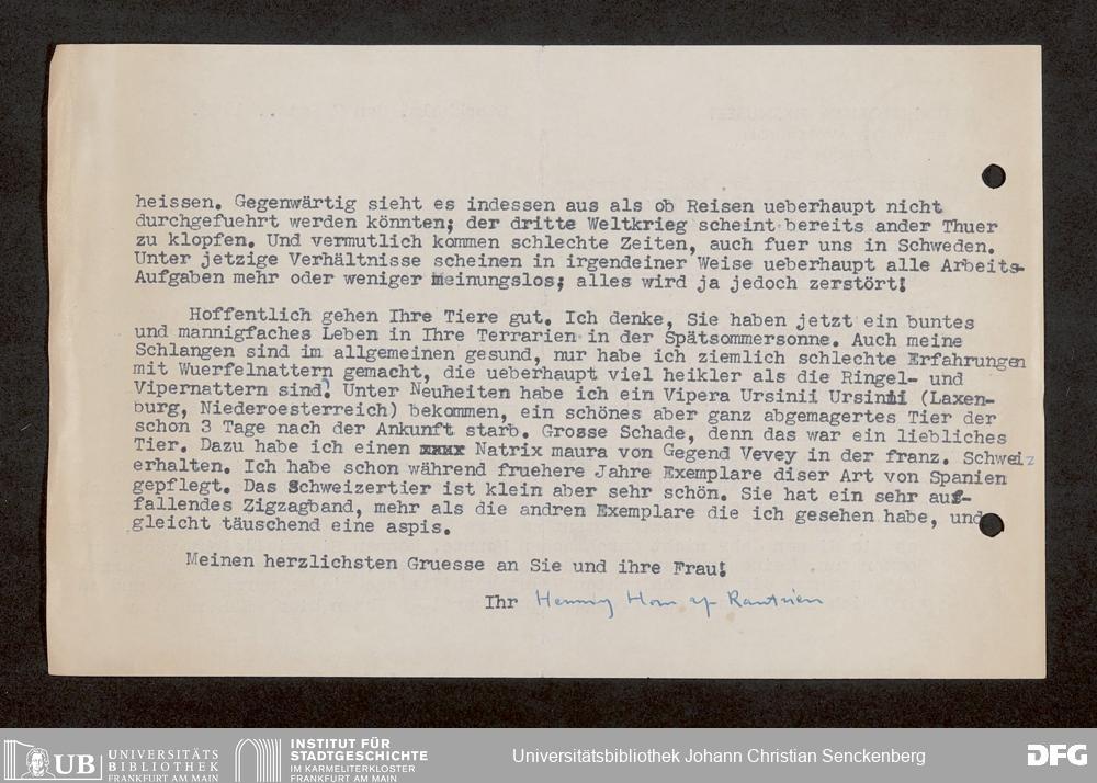 V176 Senckenberg Gesellschaft für Naturforschung, 1759-1 - Korrespondenz von Robert Mertens