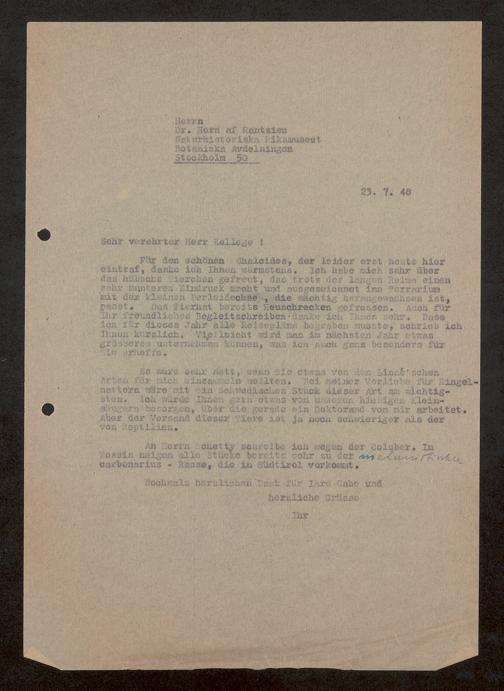 V176 Senckenberg Gesellschaft für Naturforschung, 1759-1 - Korrespondenz von Robert Mertens