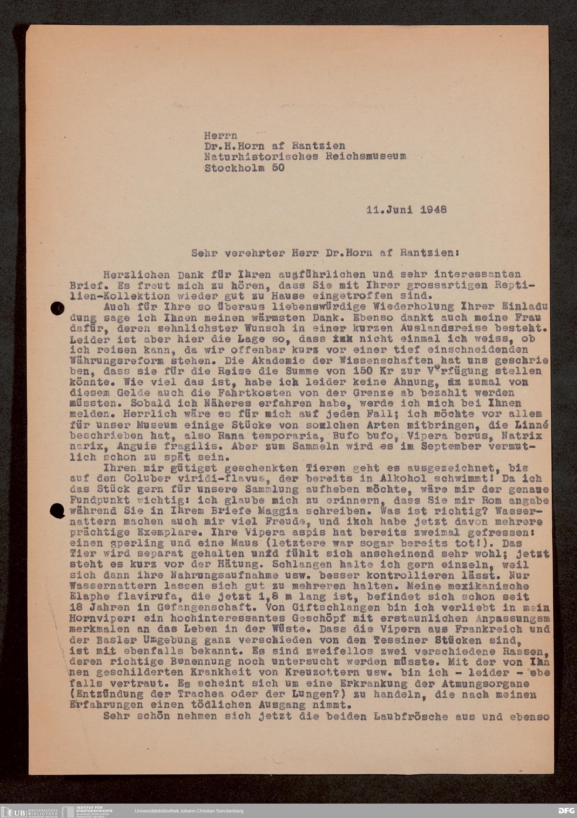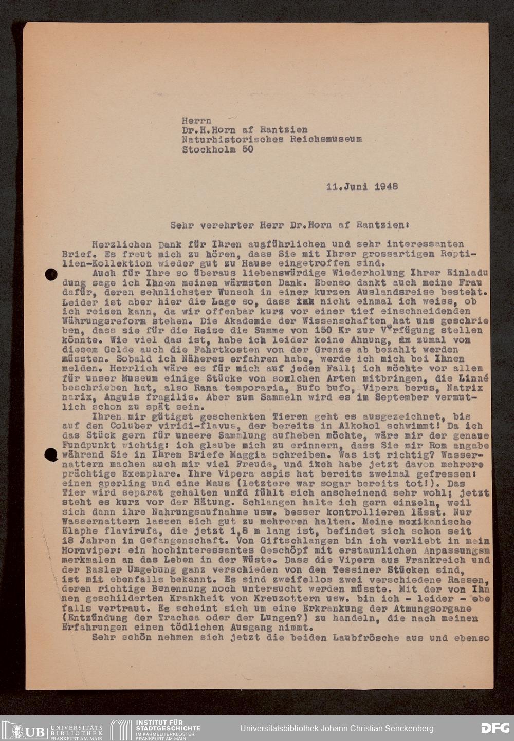 V176 Senckenberg Gesellschaft für Naturforschung, 1759-1 - Korrespondenz von Robert Mertens