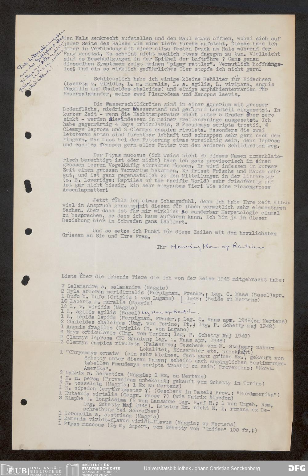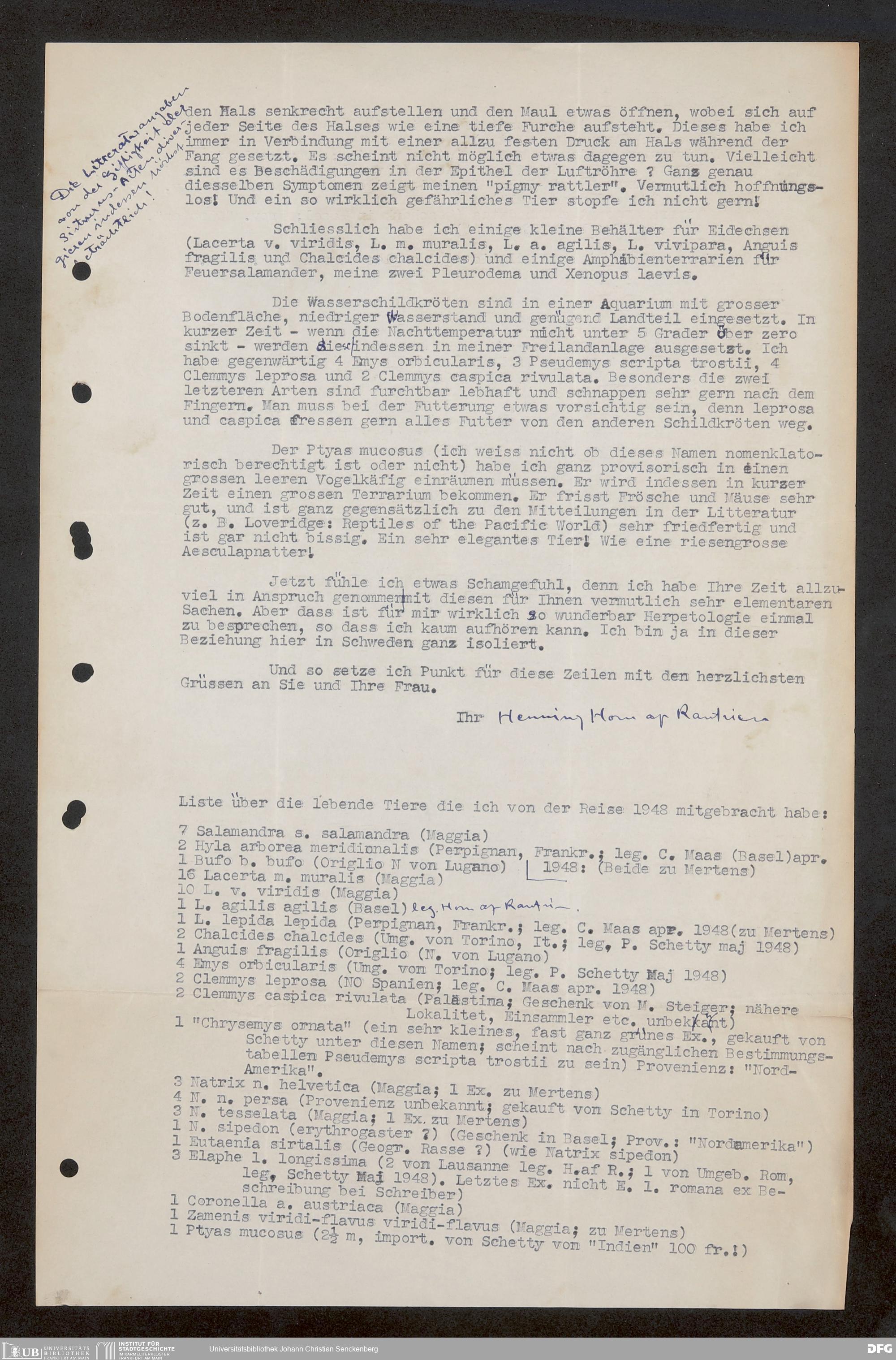 V176 Senckenberg Gesellschaft für Naturforschung, 1759-1 - Korrespondenz von Robert Mertens