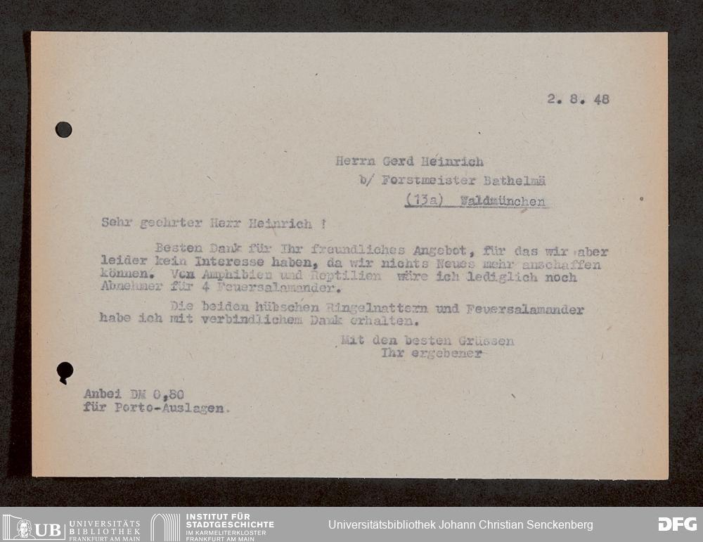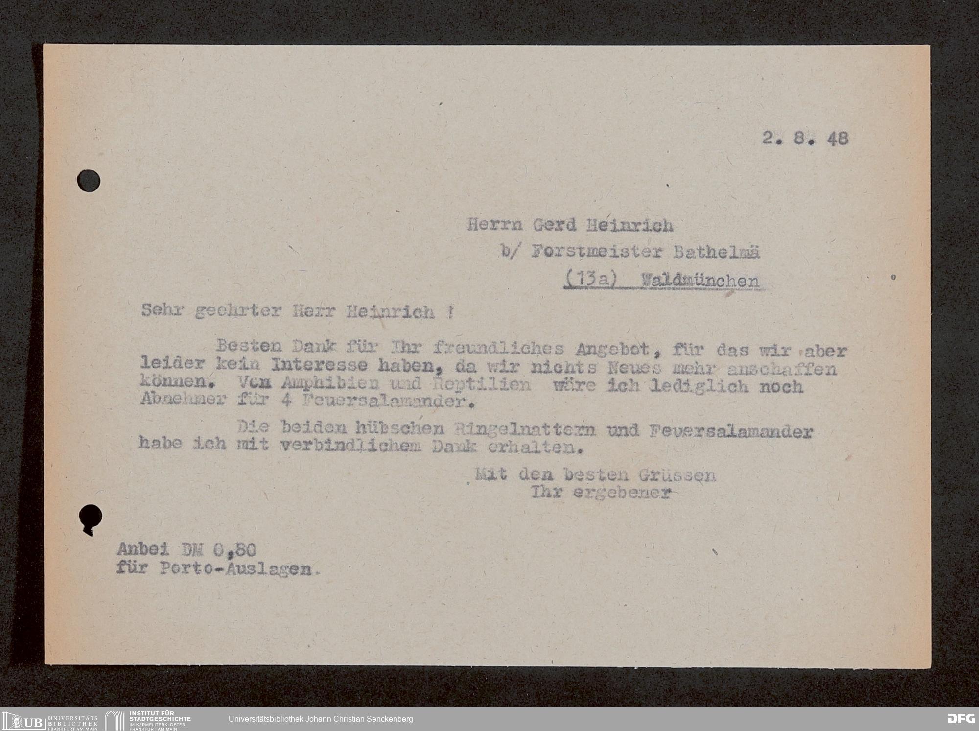 V176 Senckenberg Gesellschaft für Naturforschung, 1759-1 - Korrespondenz von Robert Mertens