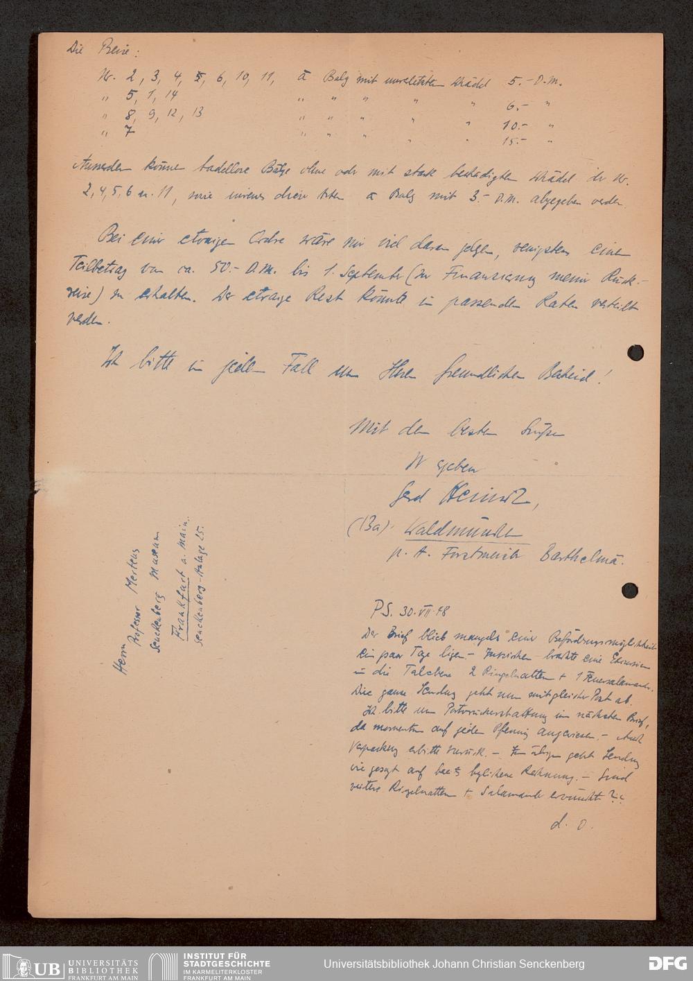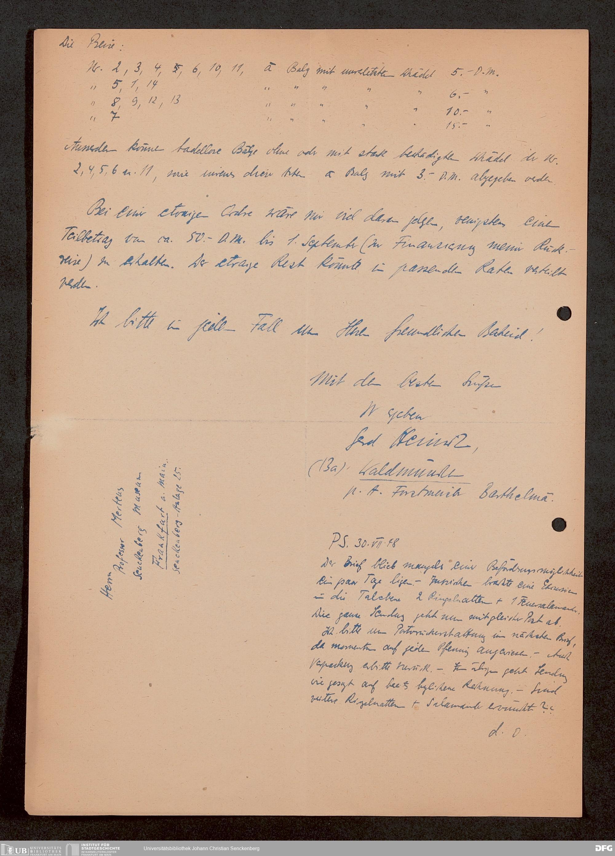 V176 Senckenberg Gesellschaft für Naturforschung, 1759-1 - Korrespondenz von Robert Mertens