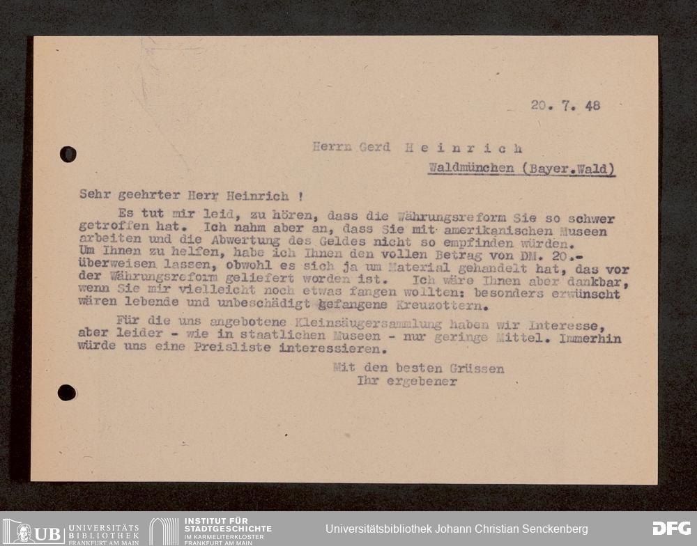 V176 Senckenberg Gesellschaft für Naturforschung, 1759-1 - Korrespondenz von Robert Mertens