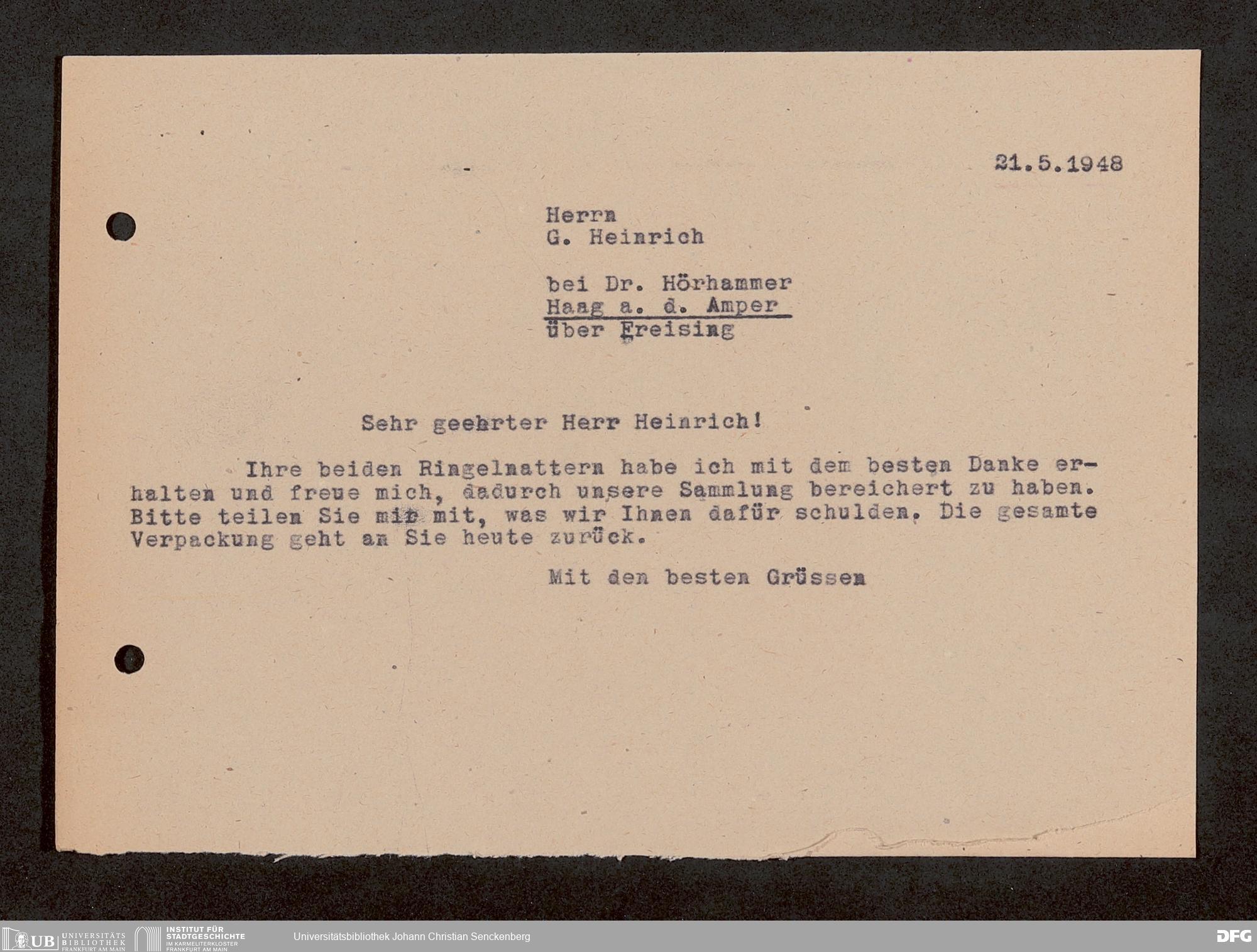 V176 Senckenberg Gesellschaft für Naturforschung, 1759-1 - Korrespondenz von Robert Mertens