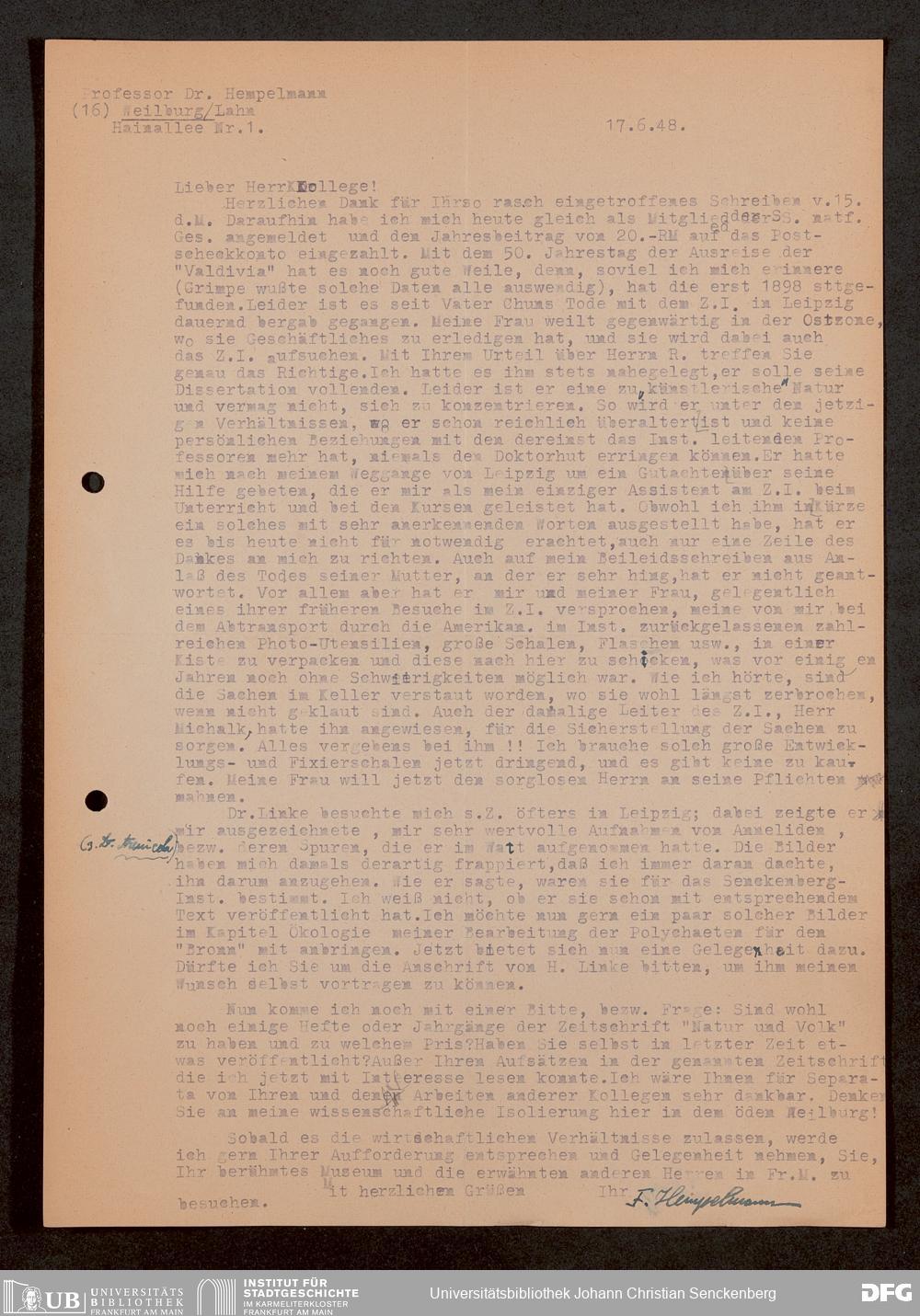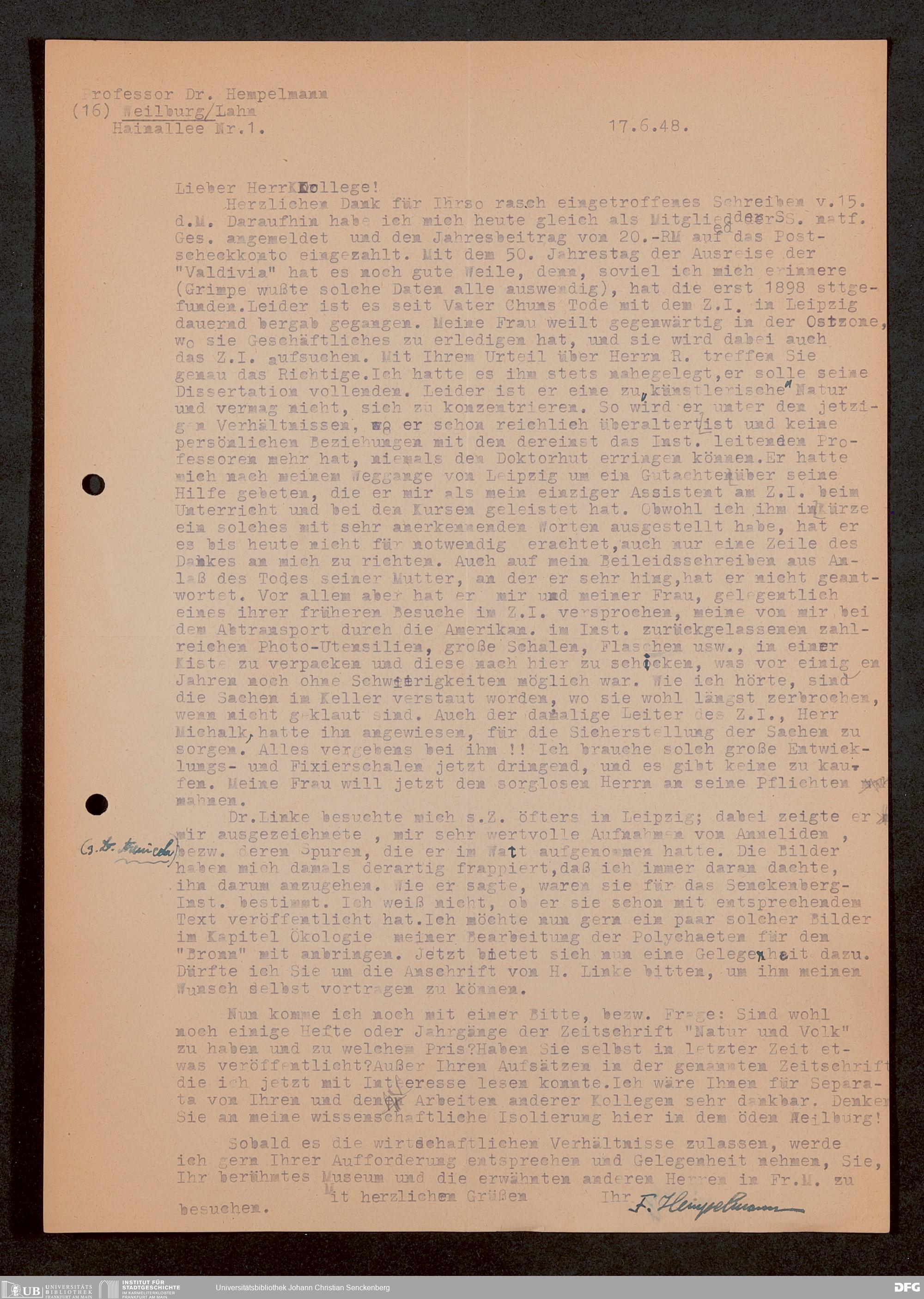 V176 Senckenberg Gesellschaft für Naturforschung, 1759-1 - Korrespondenz von Robert Mertens