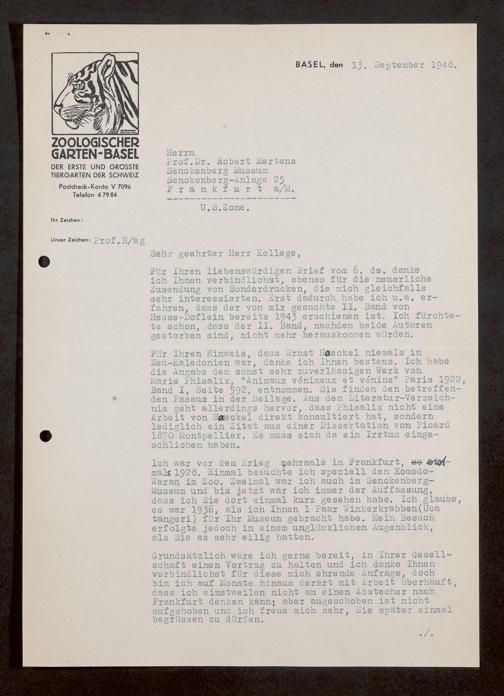 V176 Senckenberg Gesellschaft für Naturforschung, 1759-1 - Korrespondenz von Robert Mertens