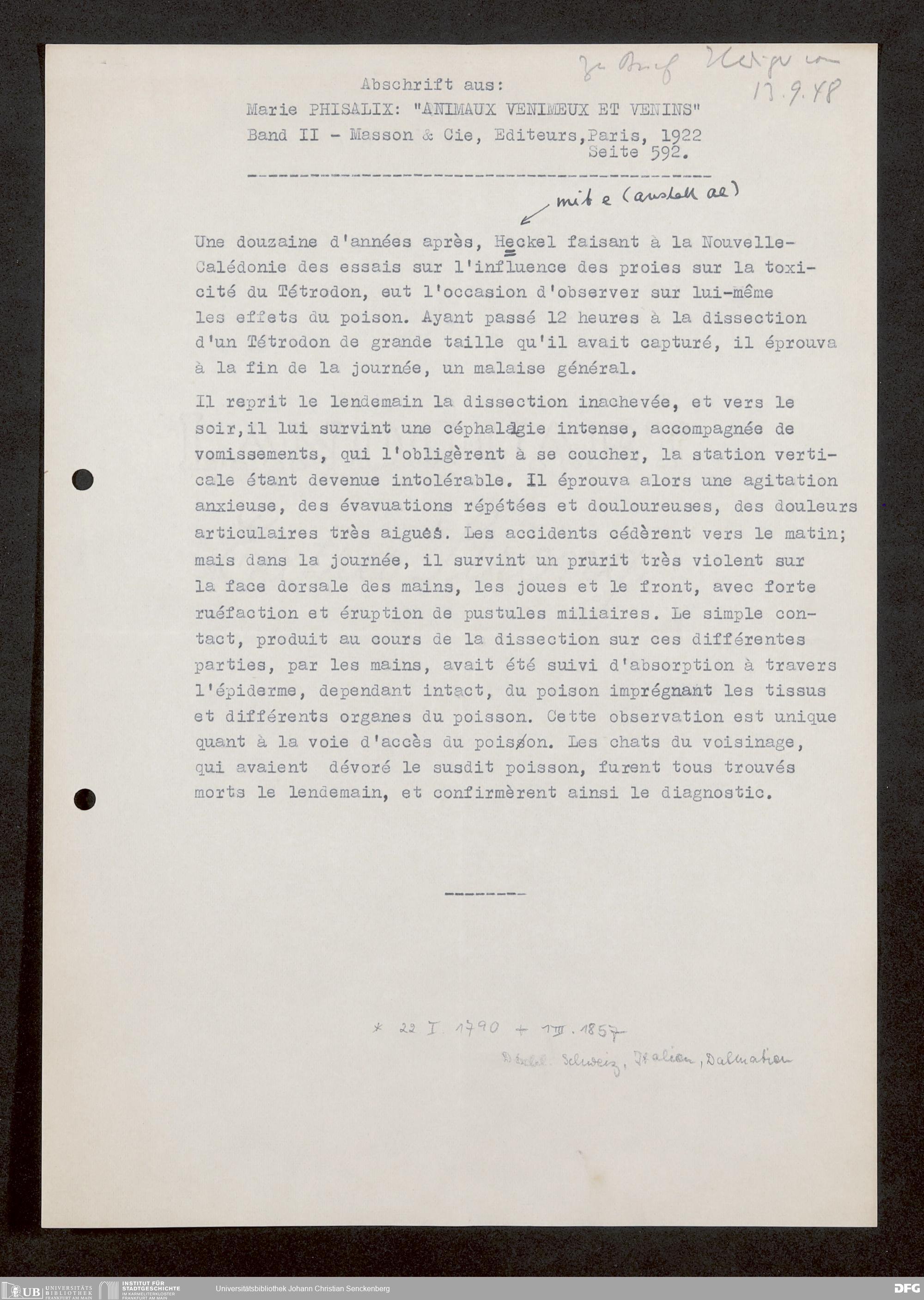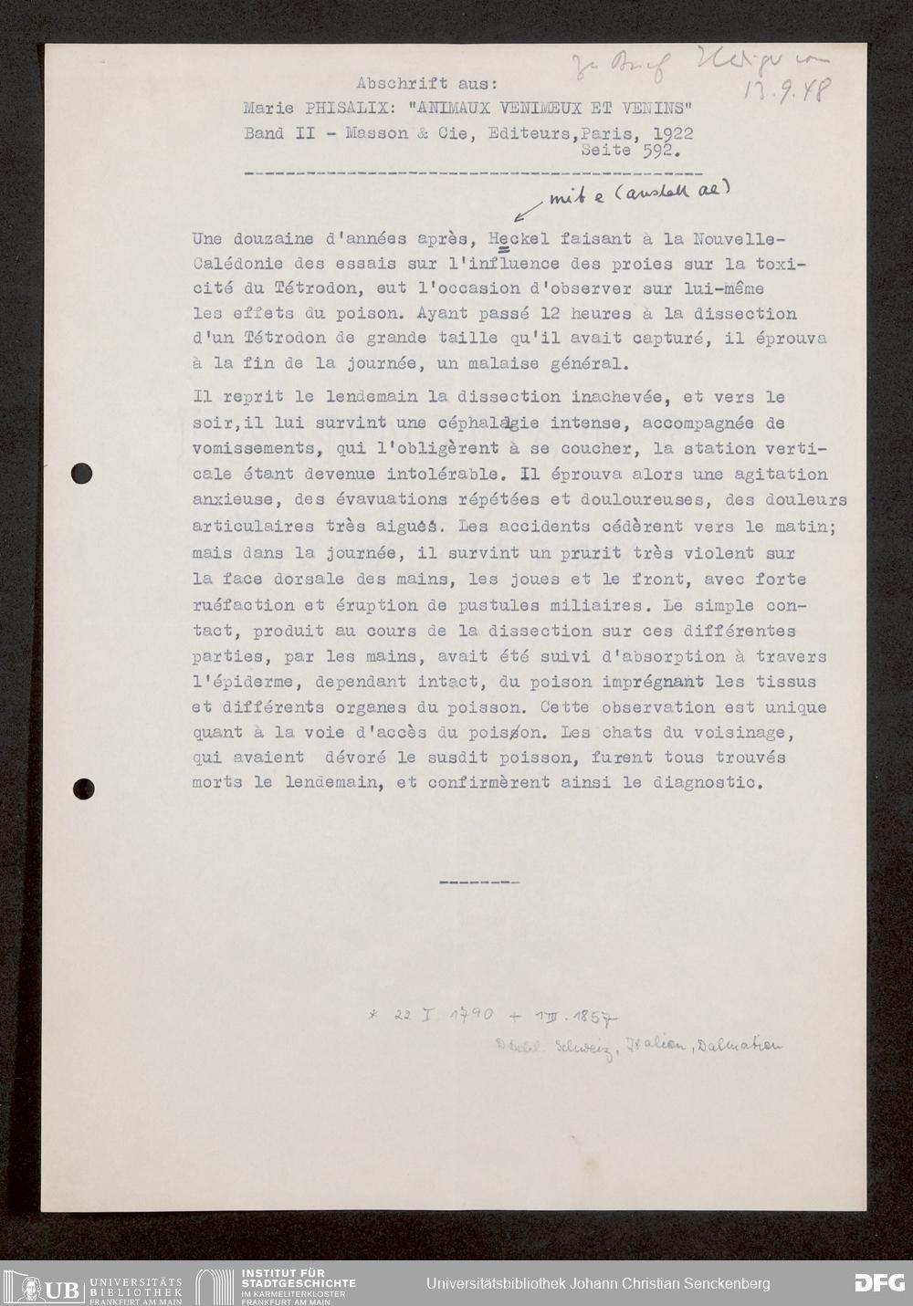 V176 Senckenberg Gesellschaft für Naturforschung, 1759-1 - Korrespondenz von Robert Mertens