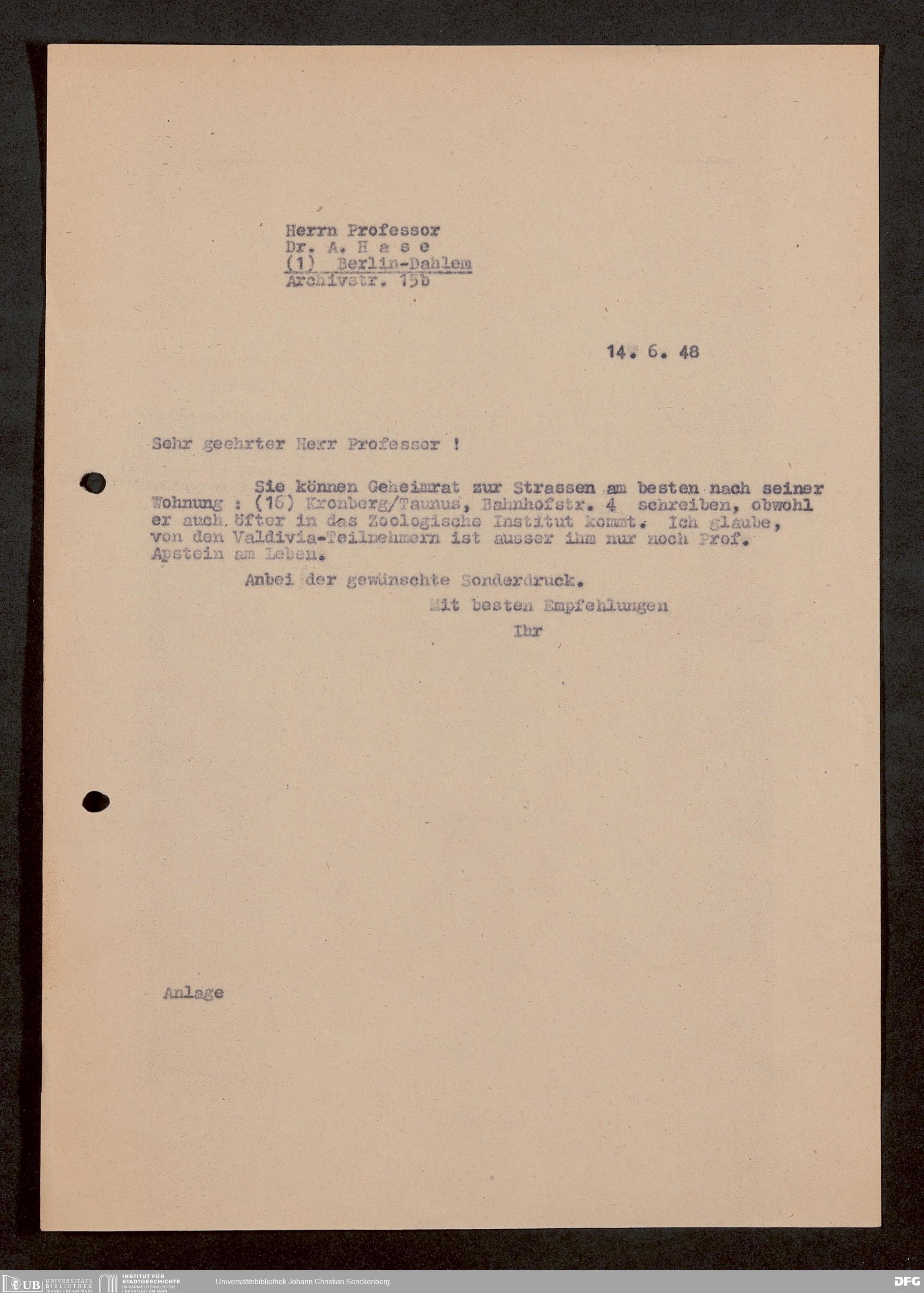 V176 Senckenberg Gesellschaft für Naturforschung, 1759-1 - Korrespondenz von Robert Mertens