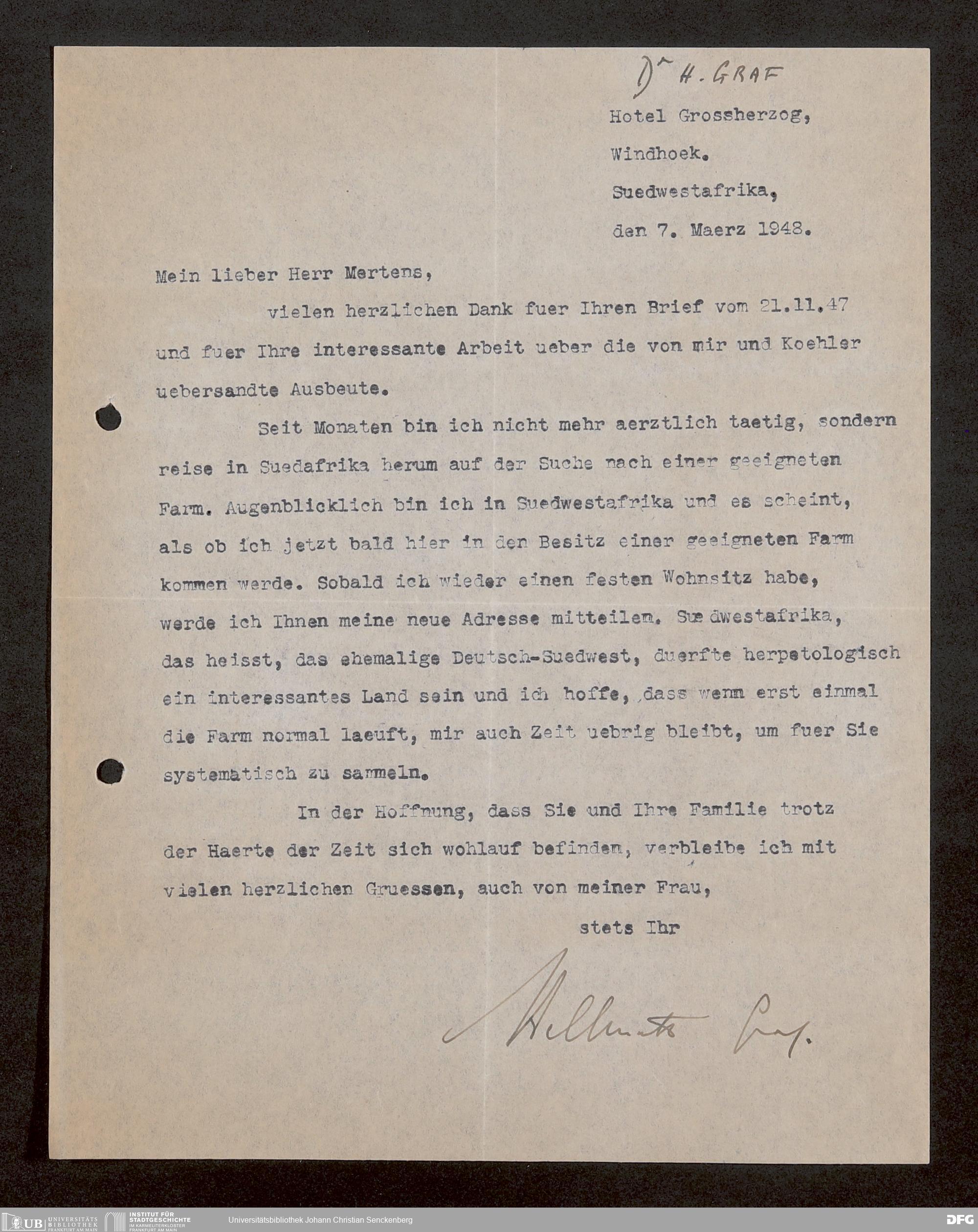 V176 Senckenberg Gesellschaft für Naturforschung, 1759-1 - Korrespondenz von Robert Mertens