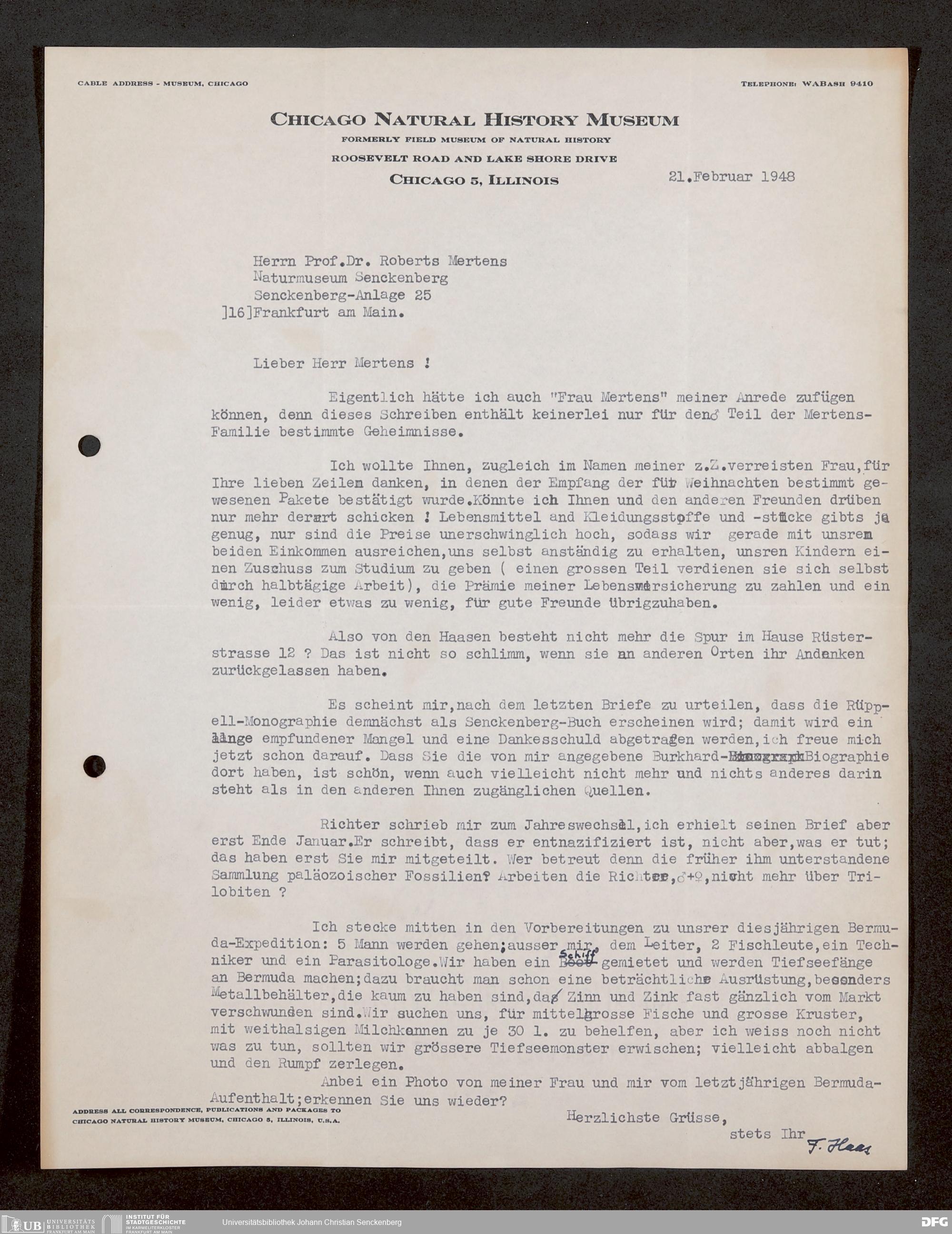 V176 Senckenberg Gesellschaft für Naturforschung, 1759-1 - Korrespondenz von Robert Mertens