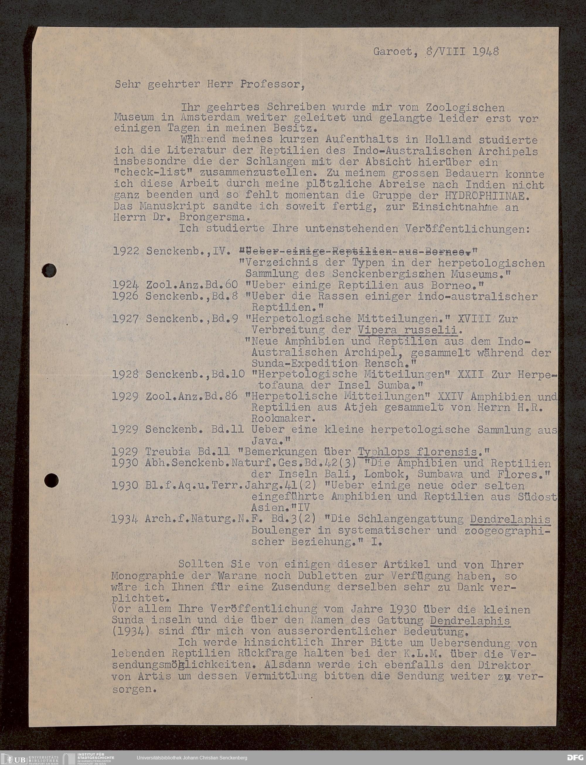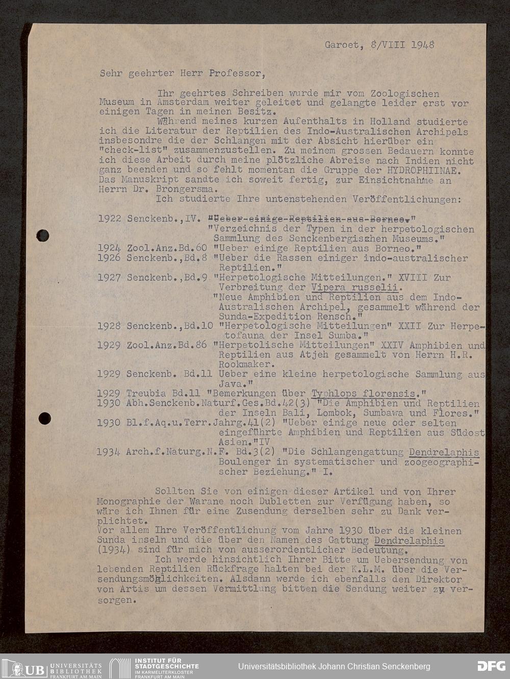 V176 Senckenberg Gesellschaft für Naturforschung, 1759-1 - Korrespondenz von Robert Mertens