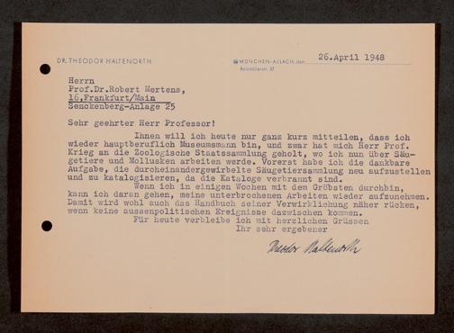 V176 Senckenberg Gesellschaft für Naturforschung, 1759-1 - Korrespondenz von Robert Mertens
