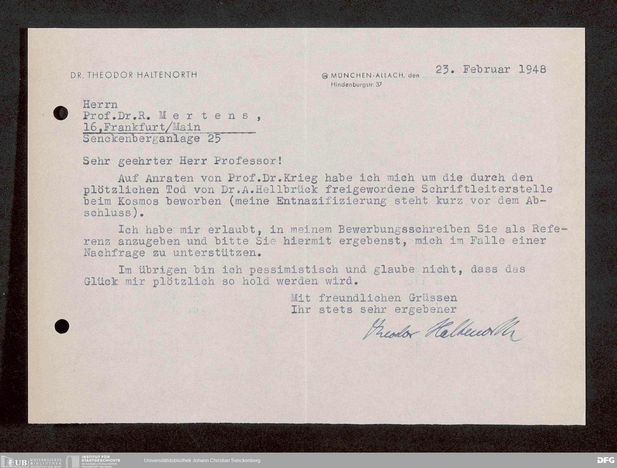 V176 Senckenberg Gesellschaft für Naturforschung, 1759-1 - Korrespondenz von Robert Mertens
