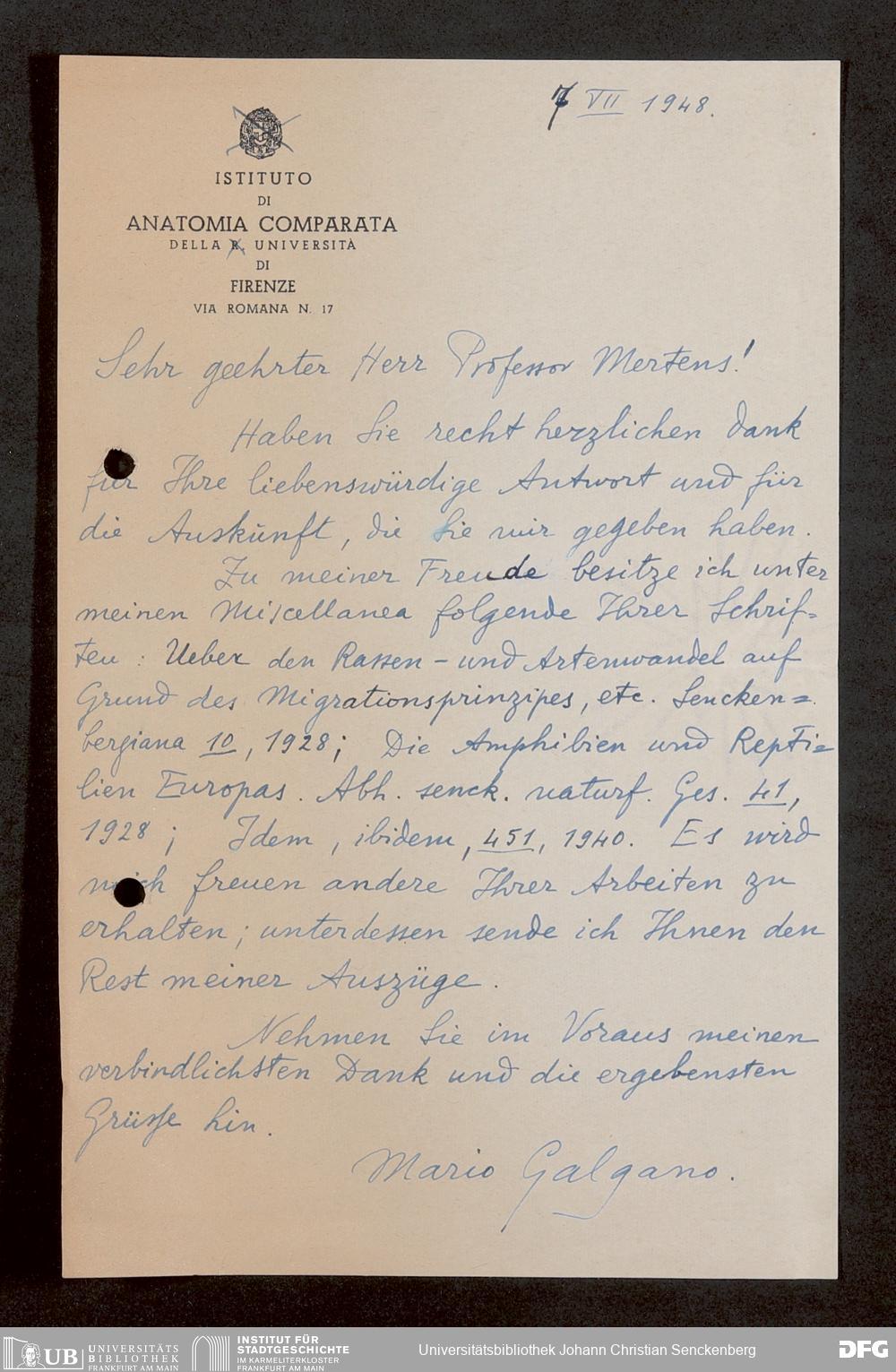 V176 Senckenberg Gesellschaft für Naturforschung, 1759-1 - Korrespondenz von Robert Mertens